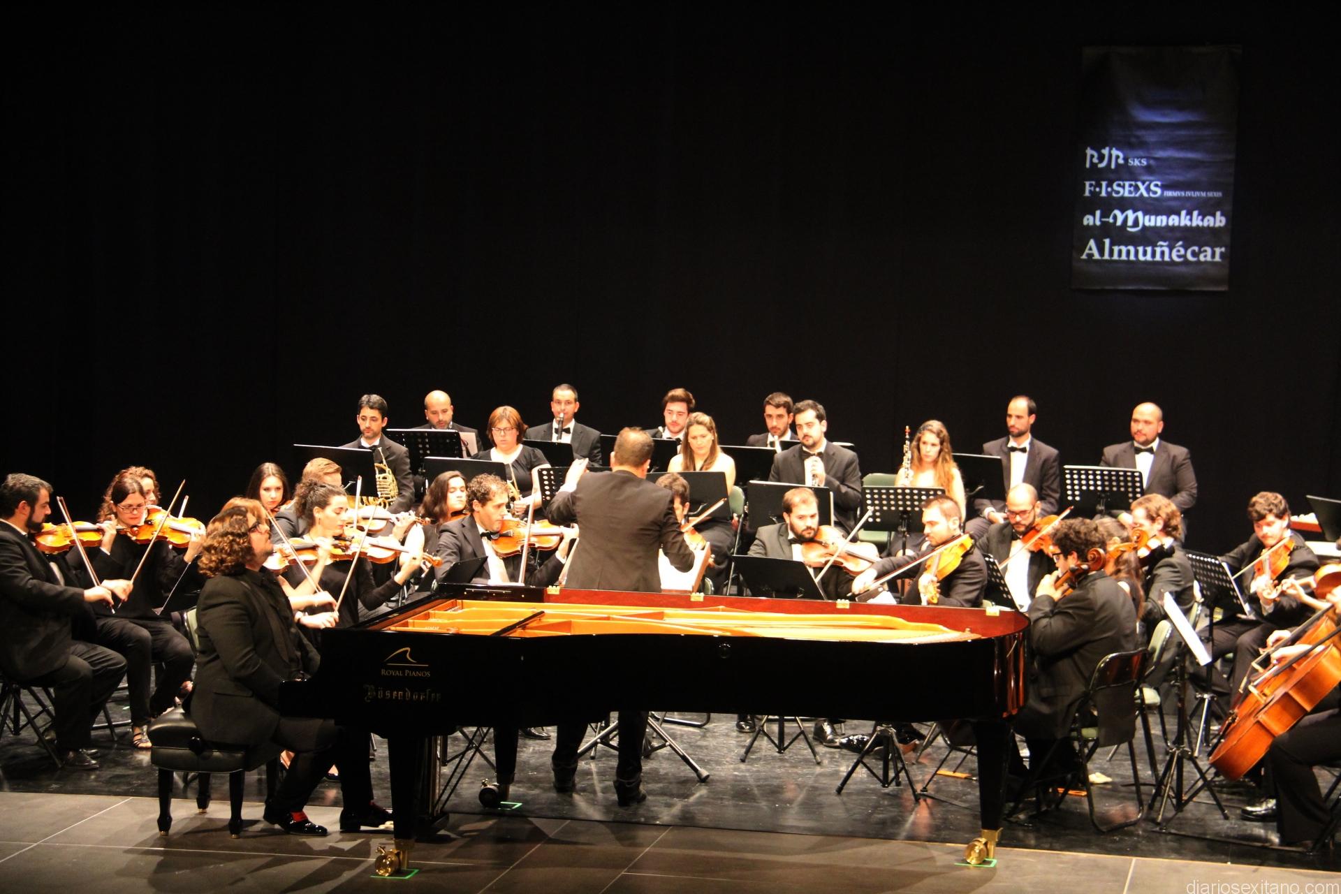 Fue otra gran noche magistral de la música en el escenario sexitano que tuvo como protagonismos, en la primera parte, a la citada Orquesta (OSCA) que comenzó interpretando la obra “Obertura Coriliano Opus 62” y seguir con la “Sinfonía Número 5, en Do menor. Opus 58. Tras el descanso se sumaba al concierto una fenomenal actuación del pianista, Ambrosio Valero y la propia OSCA, que se entregaron en los distintos tiempos de la “Sinfonía nº4. En do menor. Opus 67 de Beethoven.