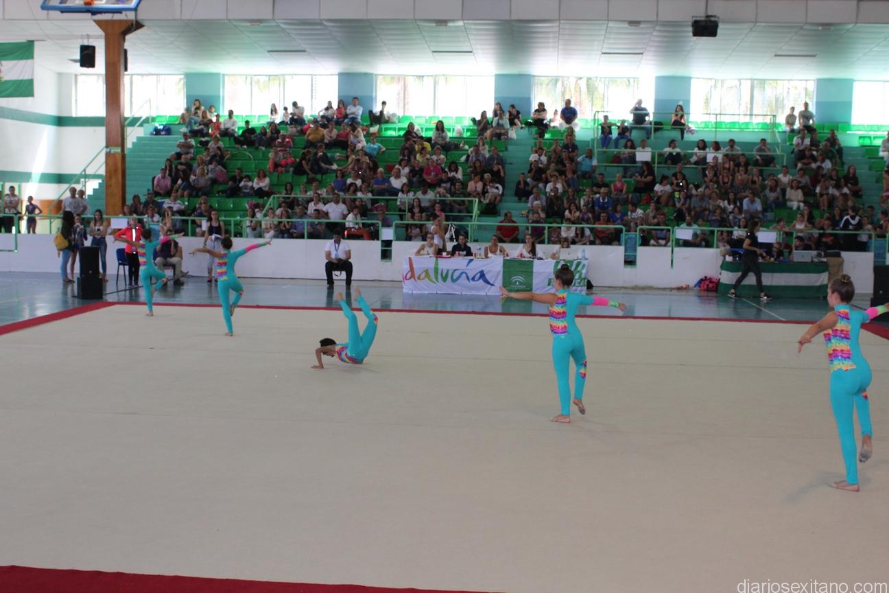La competición se desarrolló en horario de mañana y tarde. De 9 a 13 horas competieron todas las niñas en nivel patronato desde pre-benjamín hasta cadete, en modalidades tanto en conjunto como individual. En este apartado las chicas sexitanas sumaron tres oros (conjunto benjamín C2 y C1, alevín C1 ) y cuatro platas ( alevín C2, grupo happy y dos individuales en pre-benjamín y benjamín).