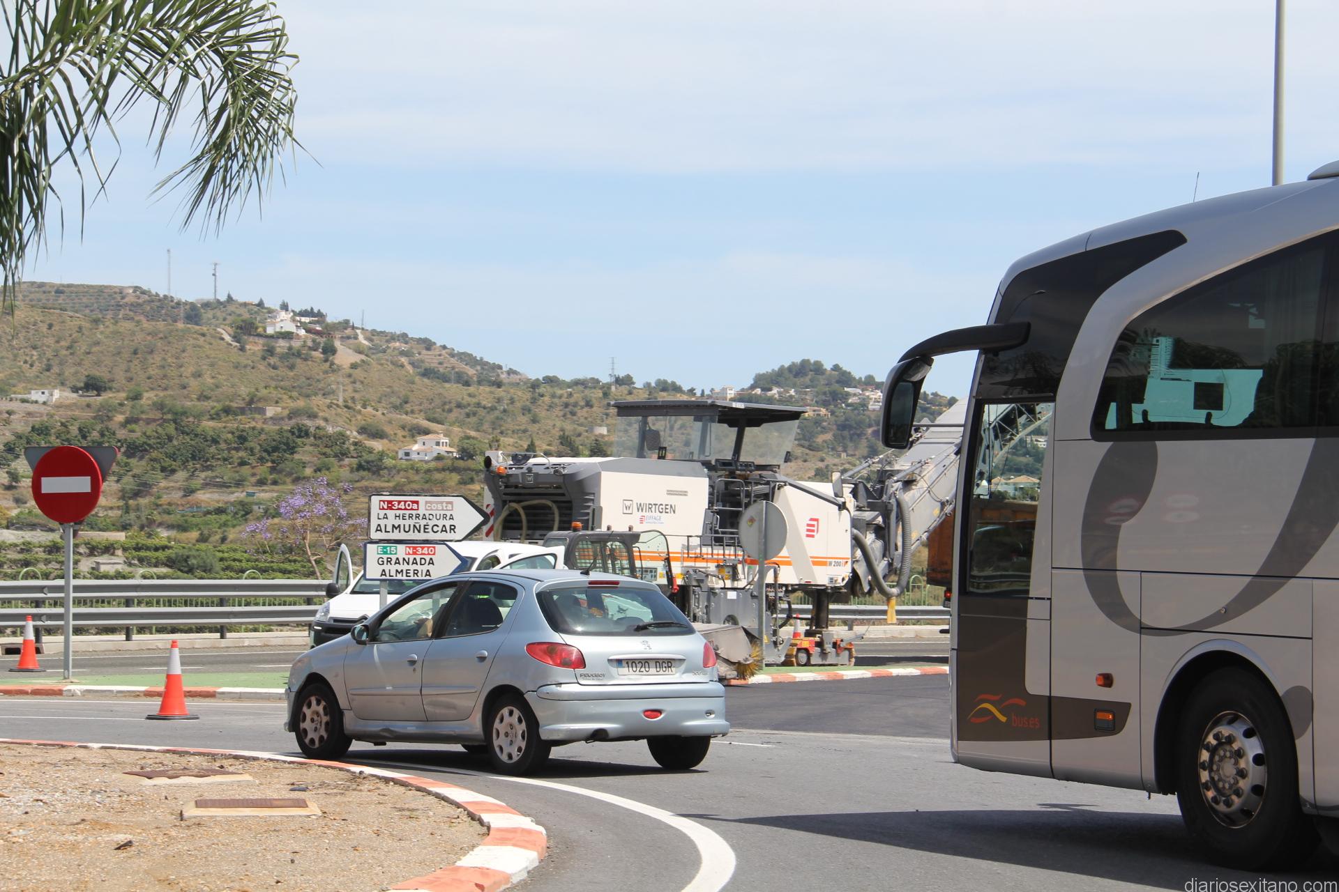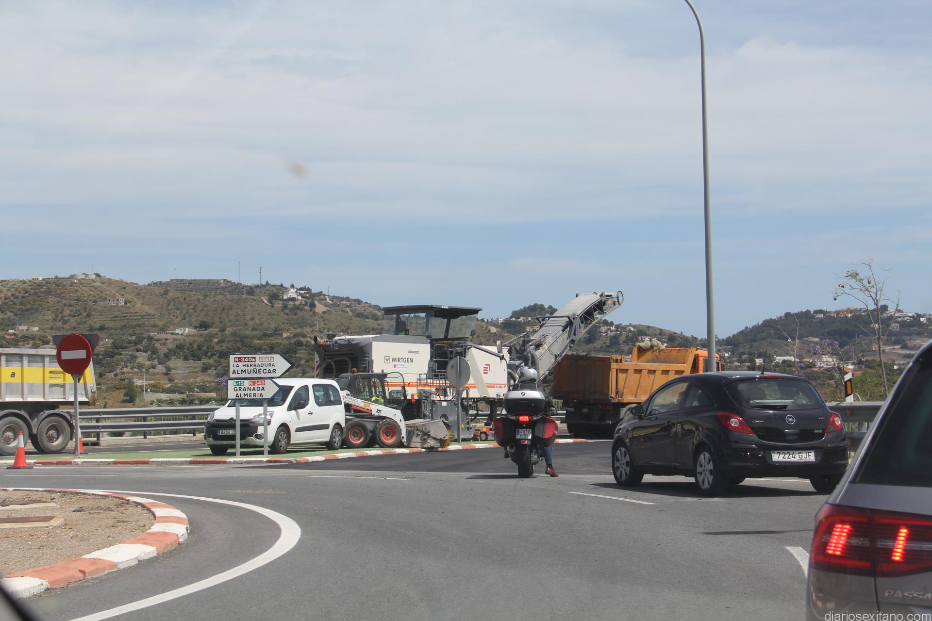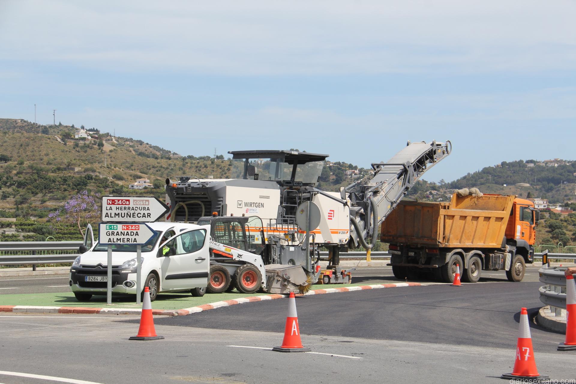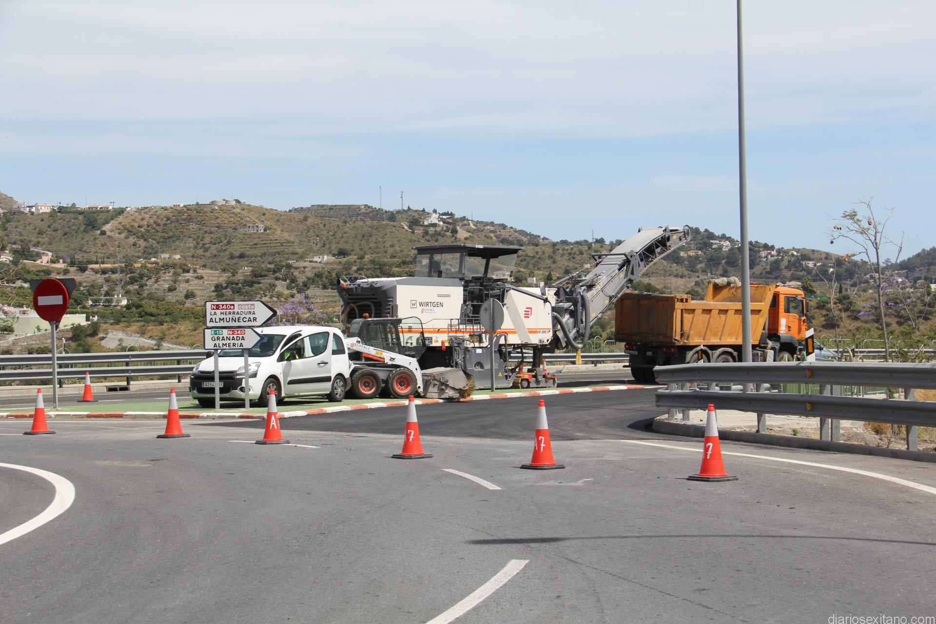 Fomento ha iniciado este lunes han comenzado los trabajos de asfaltado del acceso a La Herradura desde autovía A7 ante el mal estado que presentaba el firme tras diez años de rodaje intensivo.