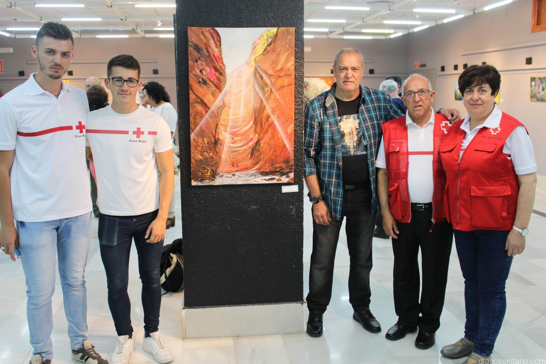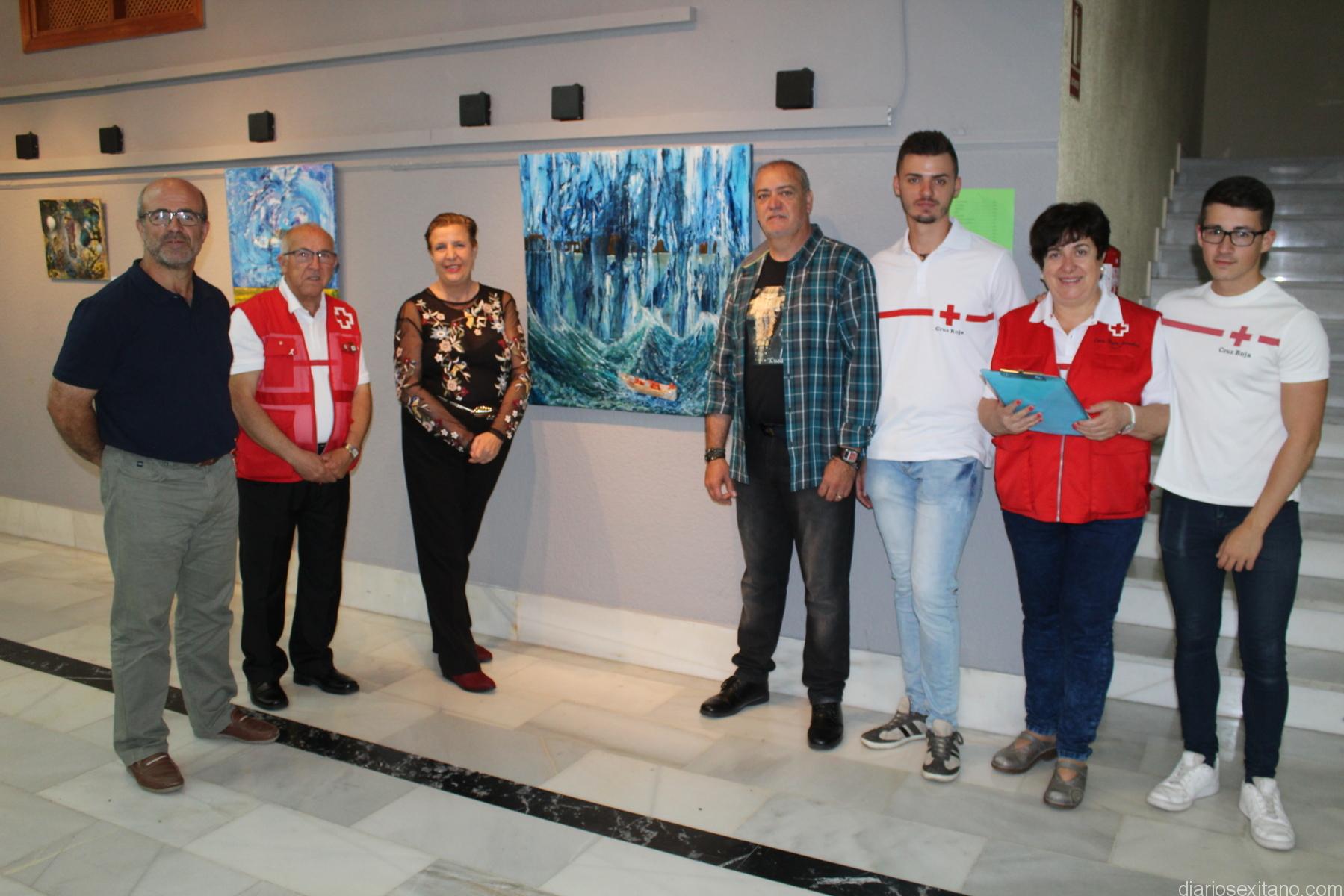 El acto inaugural contó con la asistencia de la edil de Cultura, Olga Ruano y el concejal de Medio Ambiente y Deportes, Luis Aragón, junto con representantes locales y comarcales de Cruz Roja y numerosos amigos de pintor sexitano.