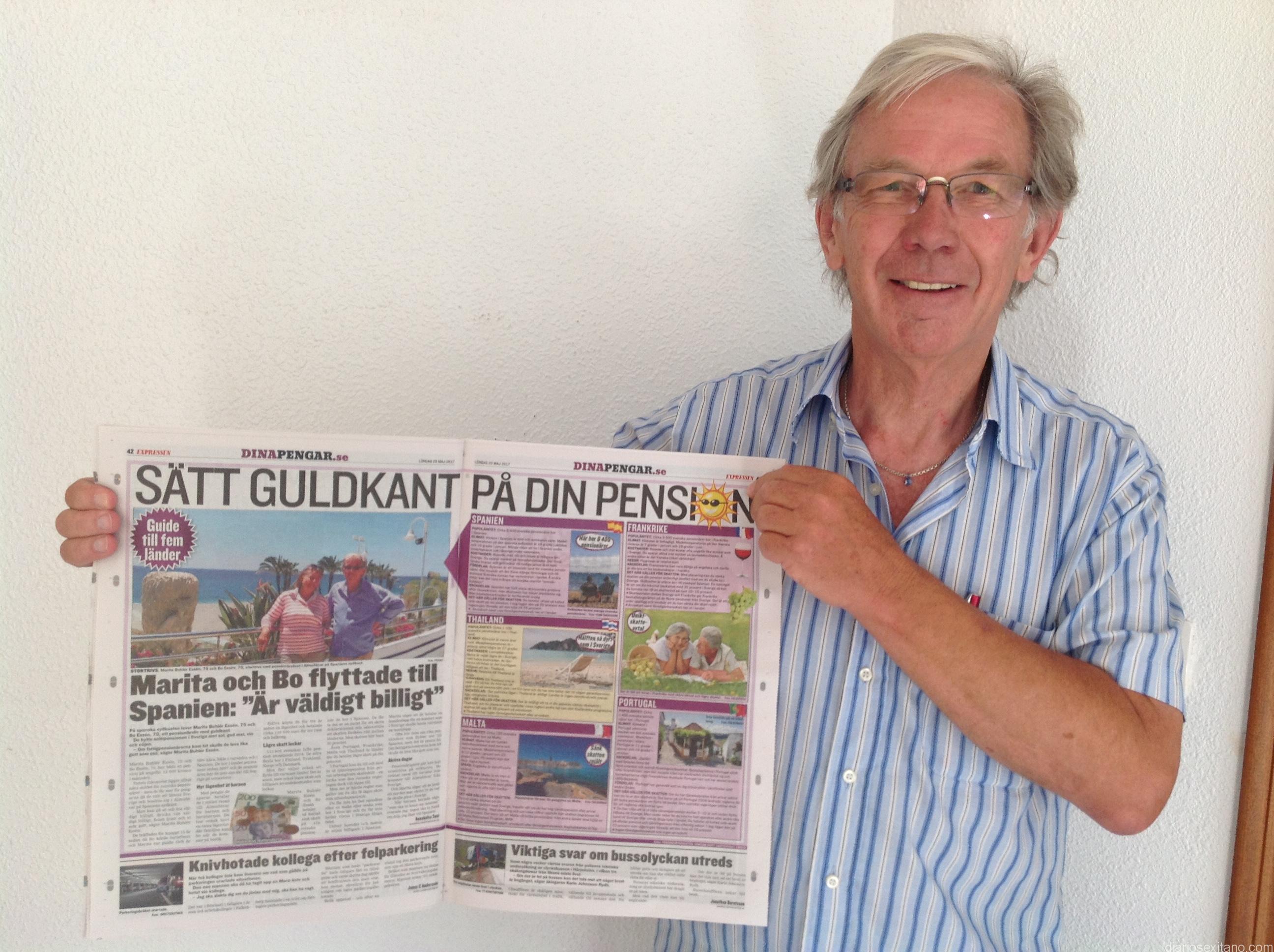 Todo ello le ha valido para que el periódico de máxima difusión en Suecia “Expressen” haya elegido a Bosse para que cuente el porqué de este destino dorado para muchos pensionistas suecos. Por ello el citado medio dedica una doble página donde Almuñécar destaca entre las preferencias. En definitiva una promoción muy importante gracias a esta iniciativa de Bosse que ha hecho incrementar el interés por Almuñécar. Es un botón de muestra del interés y la importancia que gestos como éste tiene para nuestro destino que cobran, incluso, más interés al llegar el mensaje desde un propio residente enamorado de Almuñécar. Felicidades.