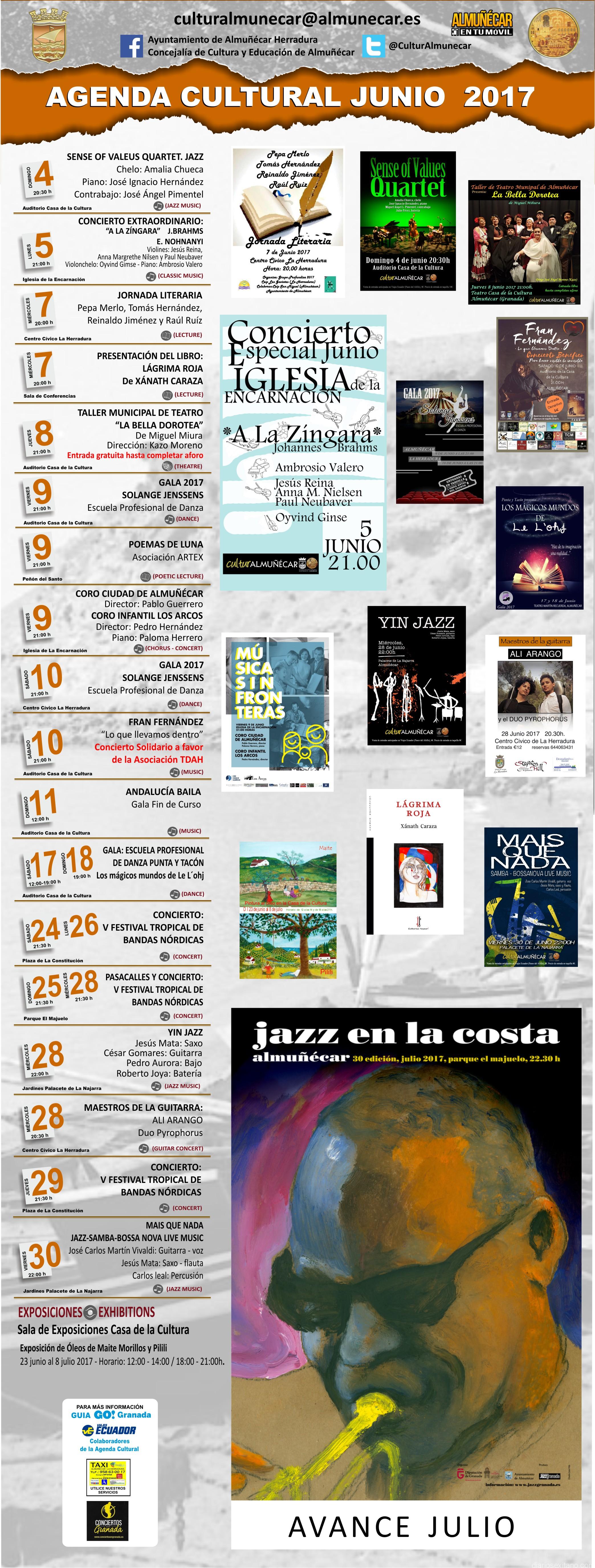 El calendario comienza este próximo domingo con un concierto de Jazz que tendrá lugar en el auditorio de la Casa de la Cultura y que estará a cargo de “Sense of Valeus Quartet” formado por chelo, Amalia Chueca; piano, José Ignacio Hernández; contrabajo; José Ángel Pimentel y batería, Julio Pérez. Las entradas anticipadas se pueden adquirir al precio de 8 euros en Viajes Ecuador (Paseo Altillo. Almuñécar) o en taquilla, al precio de 10 euros.