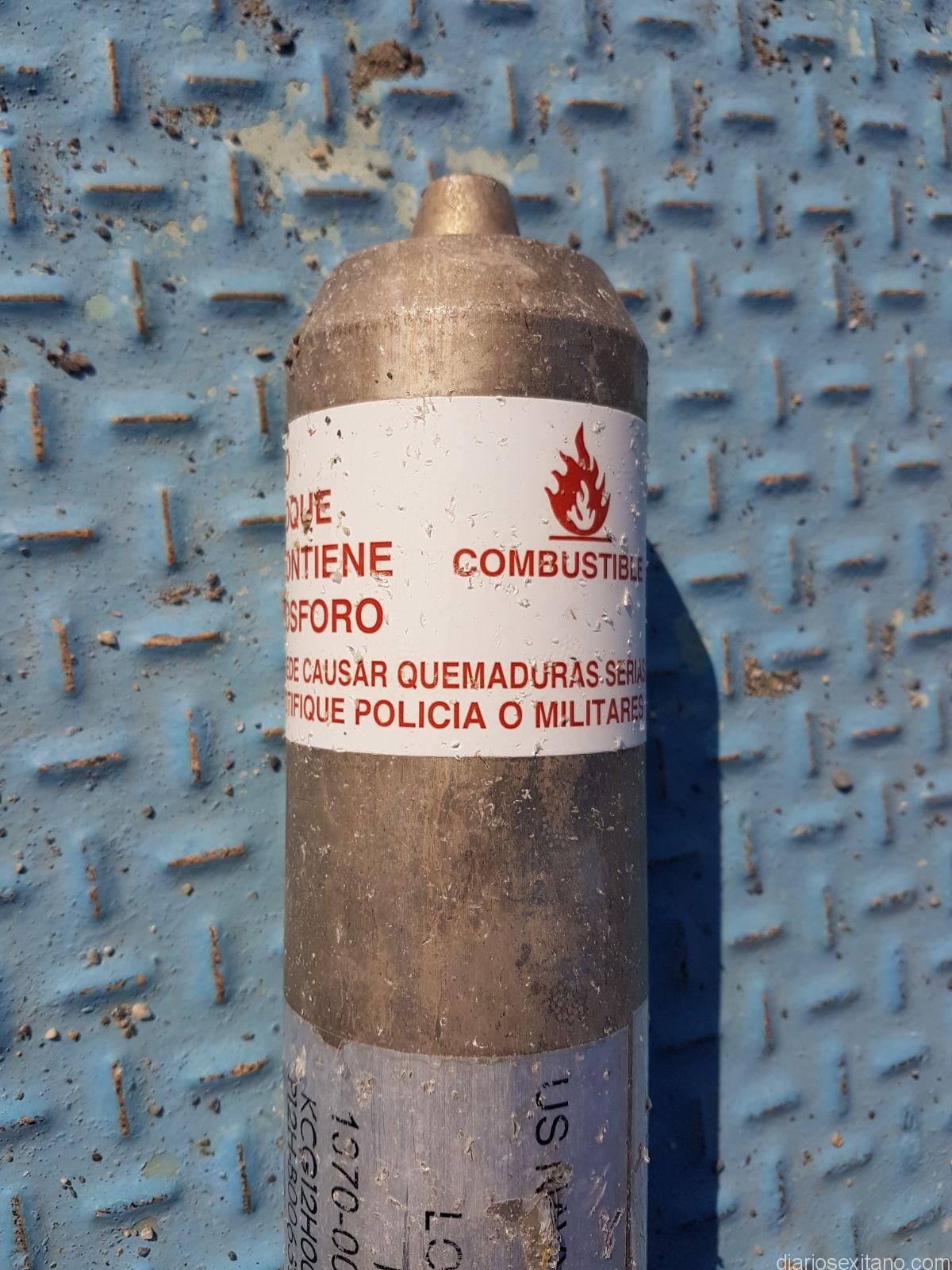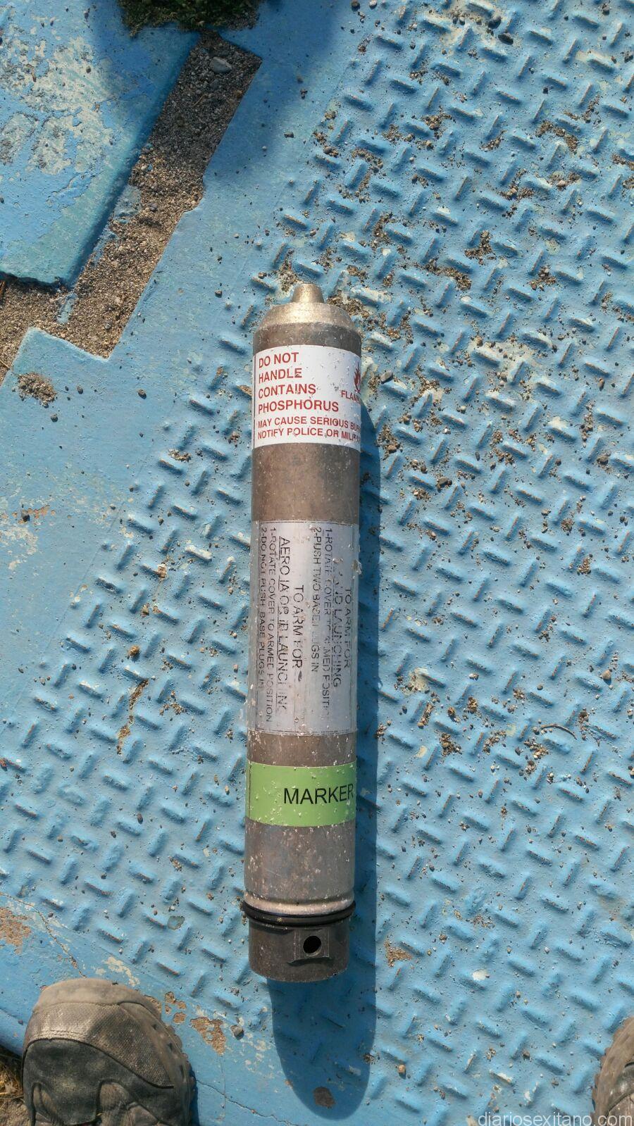El artefacto de aluminio advertía que no se debía de manejar porque contenía fósforo que pudiera provocar quemaduras y que había que notificar a policía o militares. Así la cosa toda apuntaba a que se trataba de un marcador con un cuerpo de aluminio. Clasificado como un explosivo de clase B.