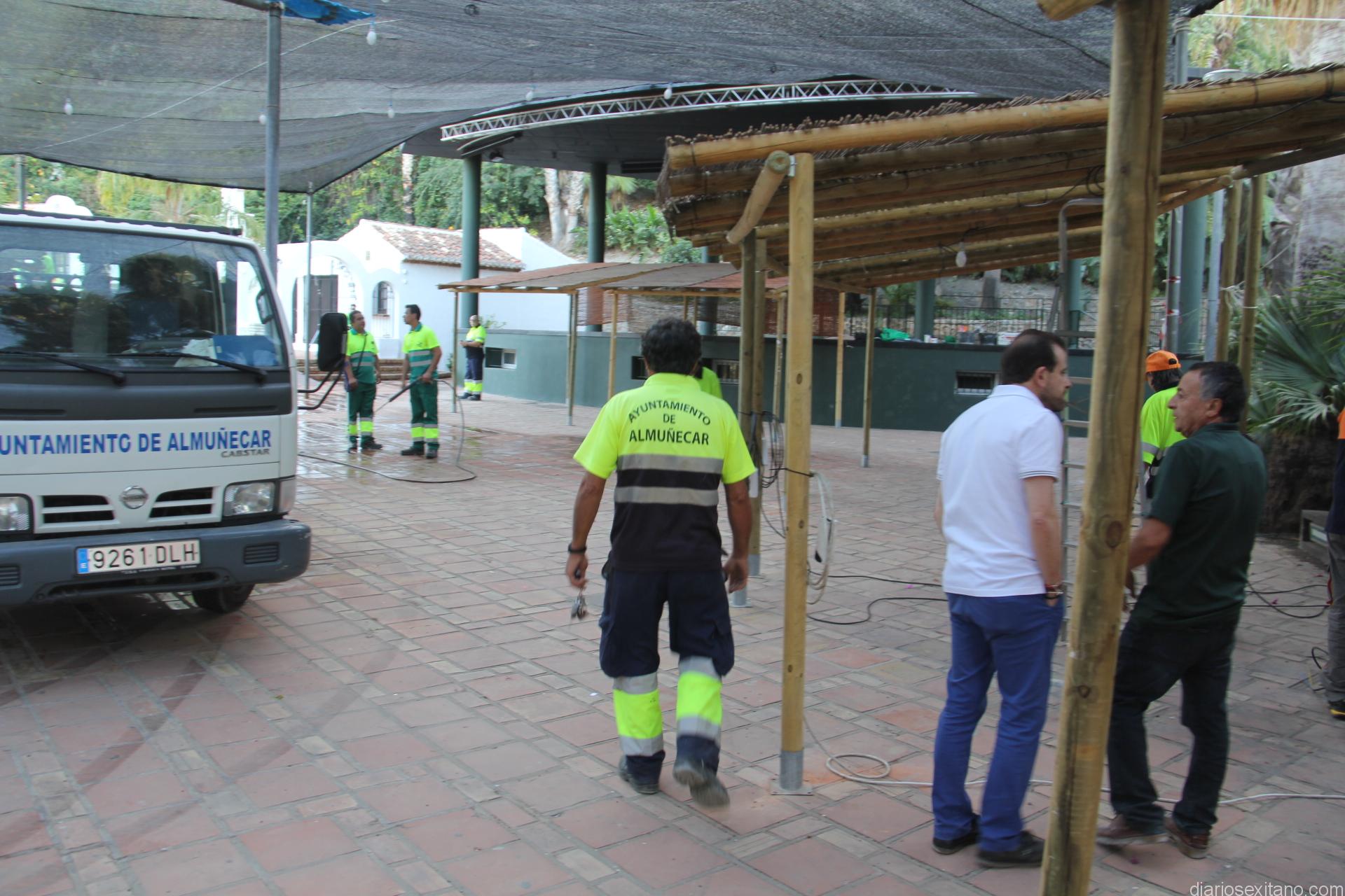 El Área Municipal de Mantenimiento y Turismo ultiman los preparativos en la jornada previa al acto inaugural que llegará este viernes, día 9, tras el montaje de todos los establecimientos.