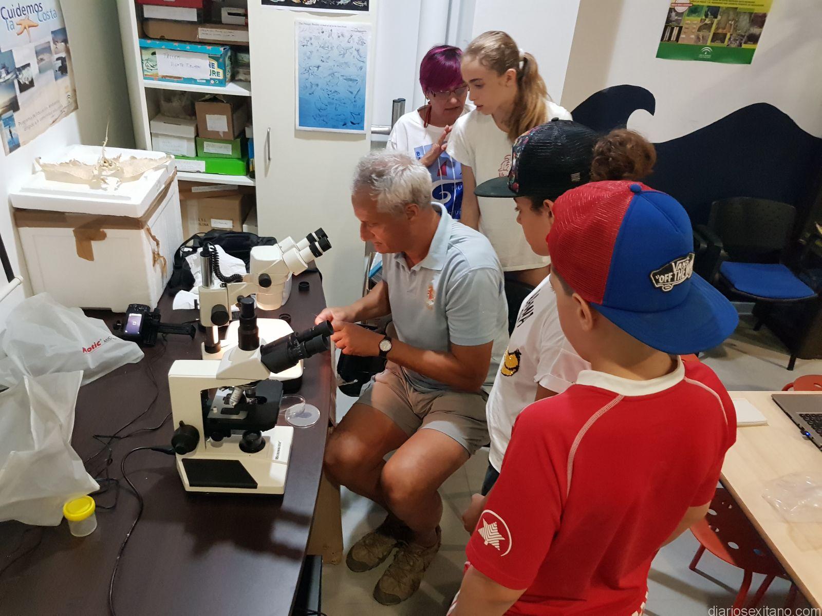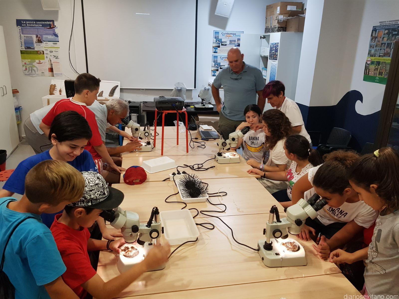 La actividad, que contó con la colaboración del Área de Medio Ambiente y la concesionaria del Servicio de Limpieza FCC, se trasladó posteriormente al Acuario Municipal de Almuñécar dedicado a la fauna mediterránea, donde los alumnos se dividieron en dos grupos para visitar las instalaciones del mismo y participar en un taller educativo, dirigido por el profesor, Sánchez Tocino, en el que apoyado con diverso material audiovisual los asistentes conocieron la riqueza de los fondos marinos sexitanos, además de experimentar con microscopios binoculares para ver diversos organismos vivos albergados en algas marinas.