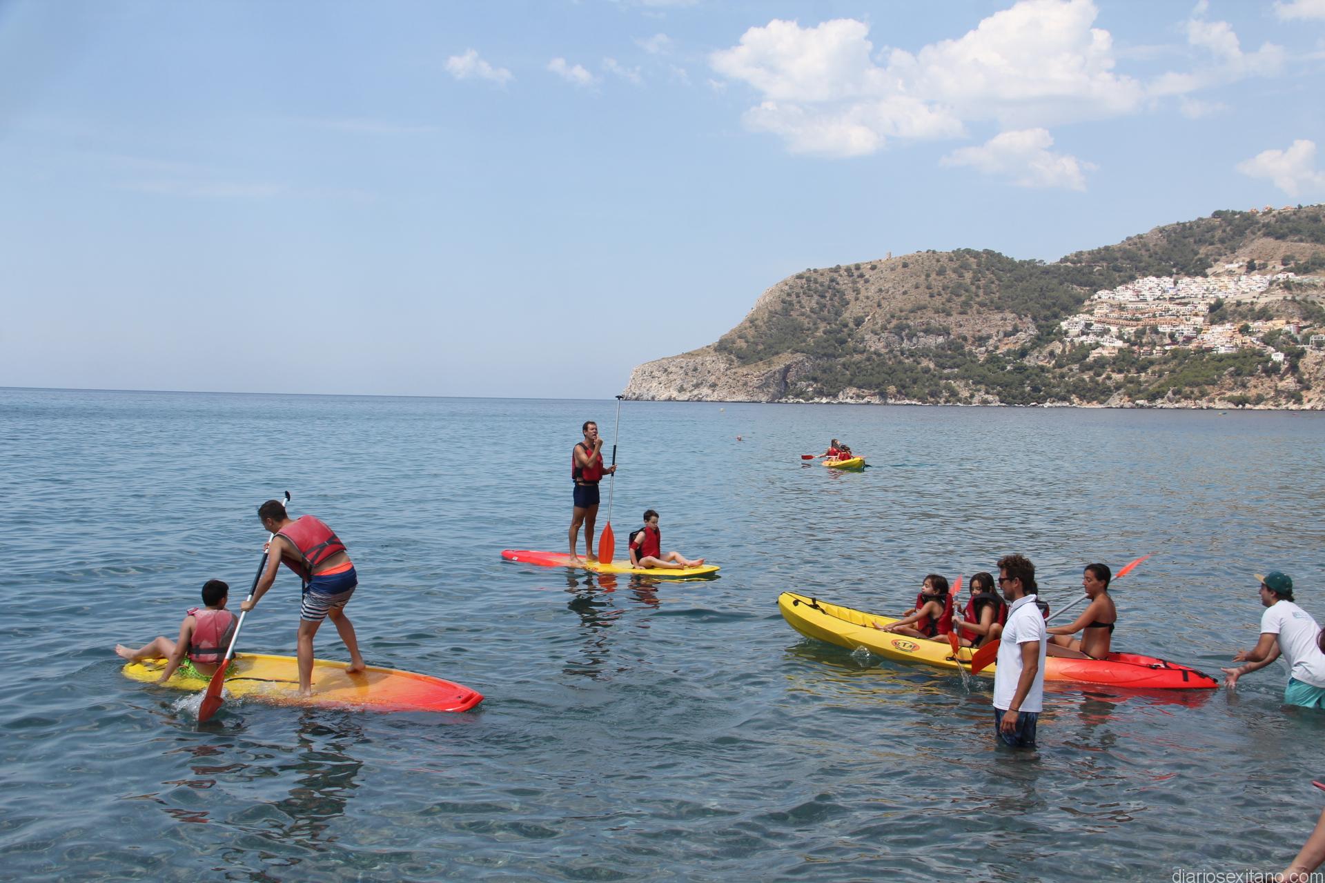 Y es que este domingo era el día perfecto para realizar las actividades náuticas reseñadas, incluso han sido muchos los que han podido desplazarse para disfrutar de la belleza de los acantilados o cuevas de Cerro Gordo y Punta de la Mona. Por cierto que algunos sexitanos también realizaron la travesía entre Almuñécar y el Paraje Natural de Maro Cerro Gordo en piragua.
