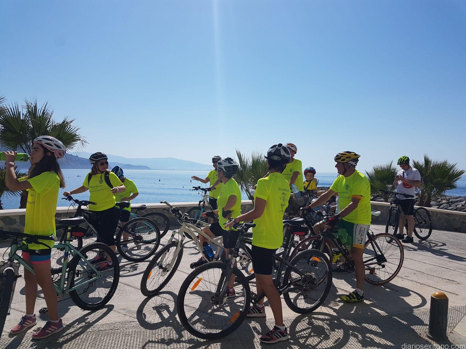 Una veintena de personas desafiaron el calor y se sumaron a la IV Jornada Ciclo-Turista Familiar que un año más ha programado el Área de Medio Ambiente y Deportes del Ayuntamiento de Almuñécar dentro de las actividades previstas en el Mes del Medio Ambiente que celebra el municipio sexitano contando con la colaboración y el apoyo de la empresa de FCC concesionaria del Servicio de Limpieza.