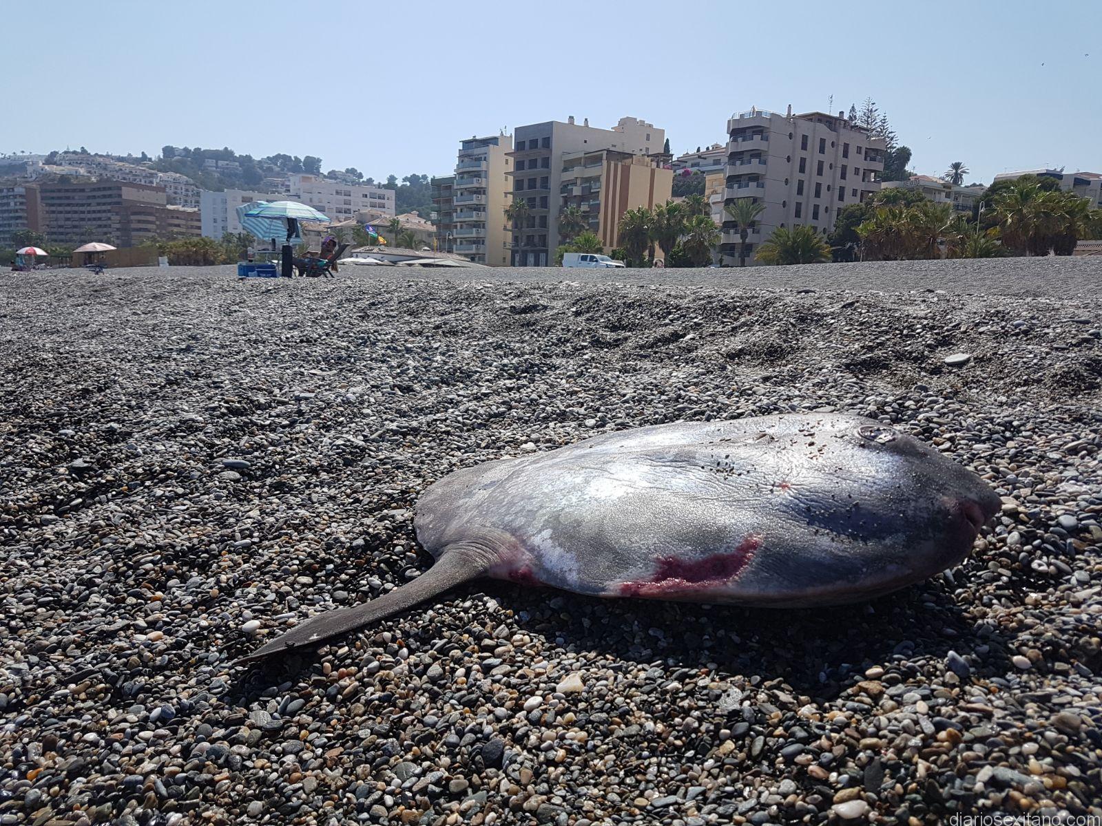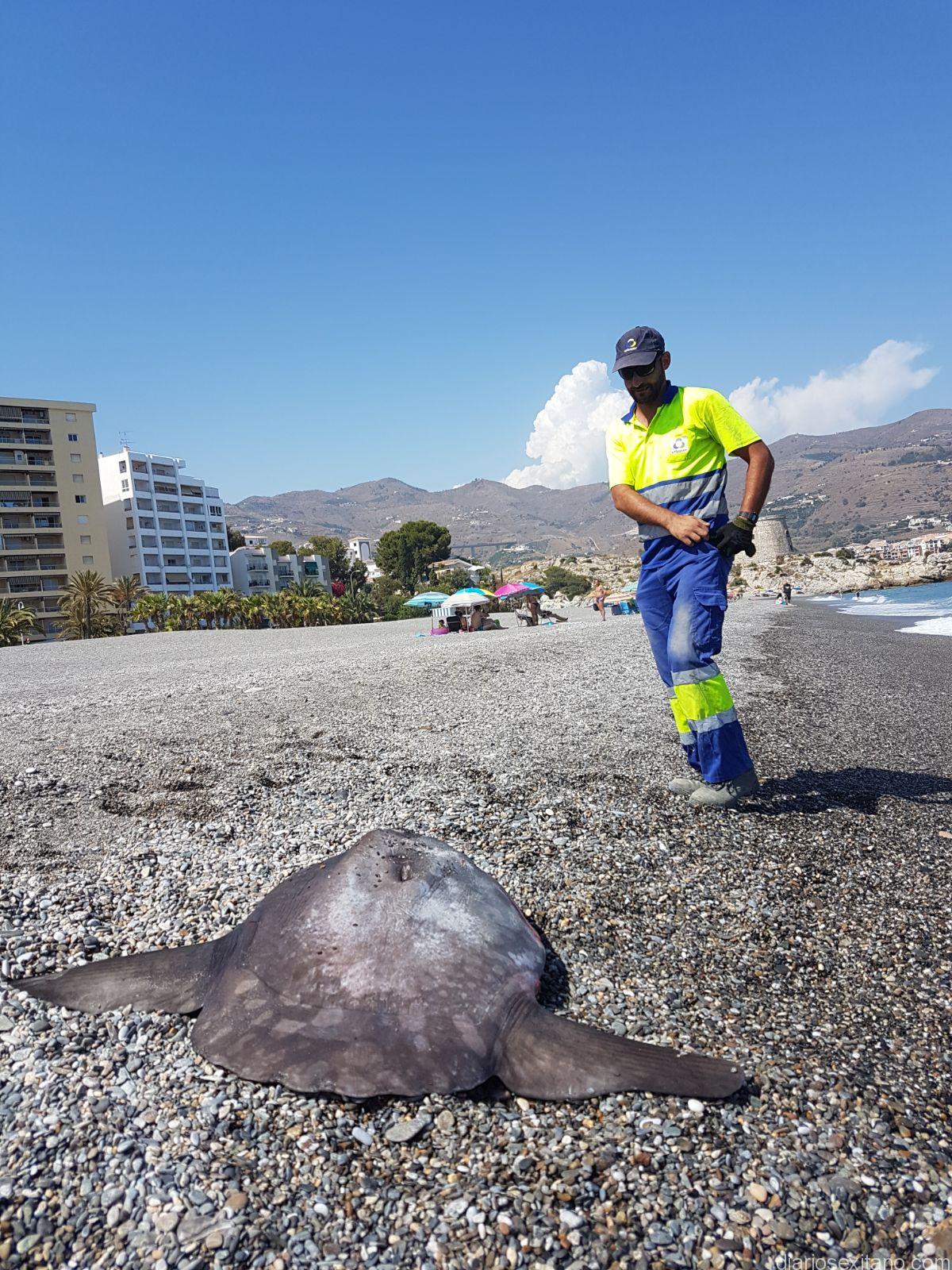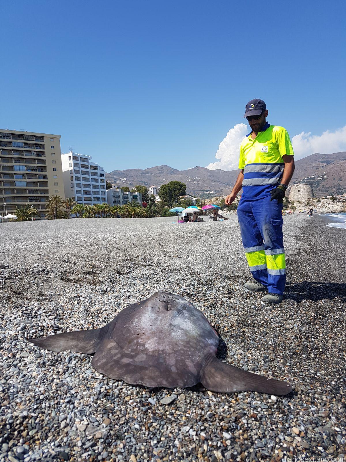 Delfines o tortugas varadas son los animales que más se pueden encontrar en las playas de Almuñécar pero un “Pez Luna” no es normal. Así lo manifestaba Miguel Cabrera, encargado de la empresa, Urbaser, concesionaria del mantenimiento y limpieza de las playas sexitanas cuando le preguntamos si era frecuente los peces Luna.
