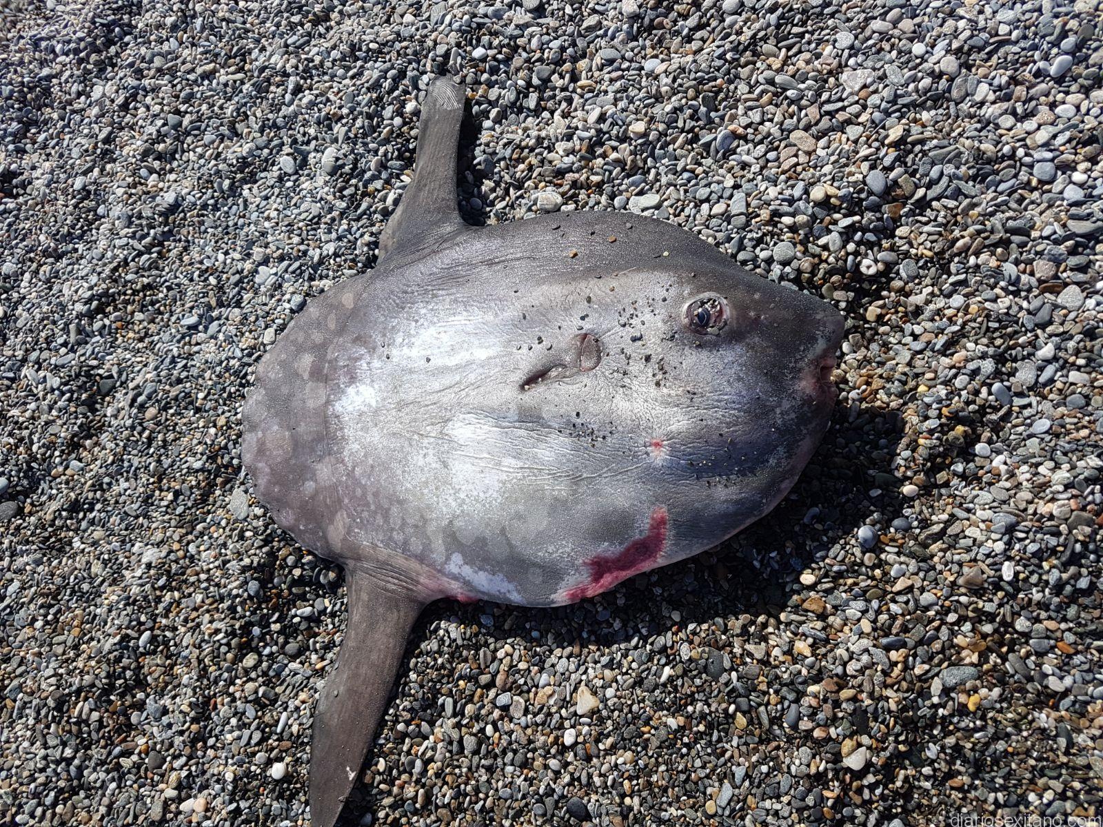 Y es que el pez luna (Mola mola) es un pez pelágico tetraodontiforme de la familia Molidae. Es el pez óseo más pesado del mundo. “Este tendría de peso unos 80 kilos. Por ello tuvimos que emplearnos dos personas para retirarlo de la playa”, manifestó Cabrera mientras inspeccionaba el animal junto a su compañero, Marcos Garciolo.