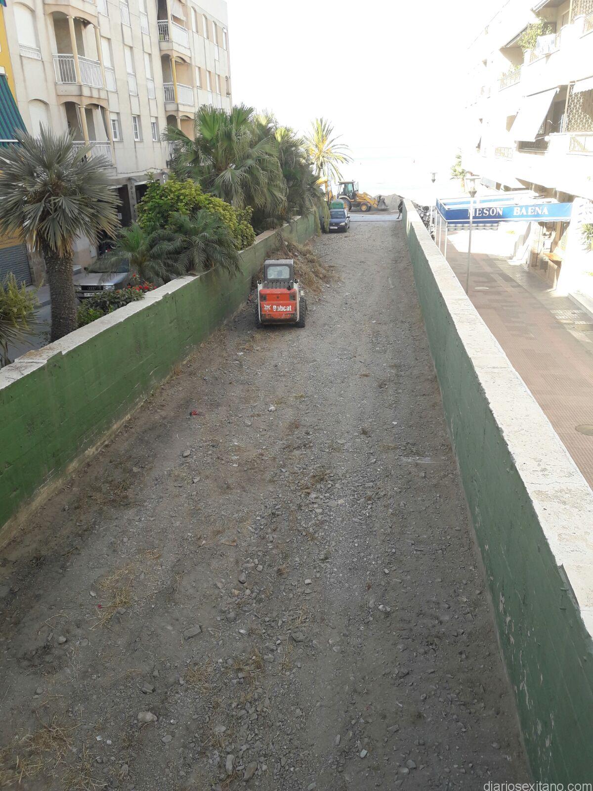 La limpieza del cauce se realiza desde la desembocadura en el vial de playa hasta el polideportivo colindante a la rambla.