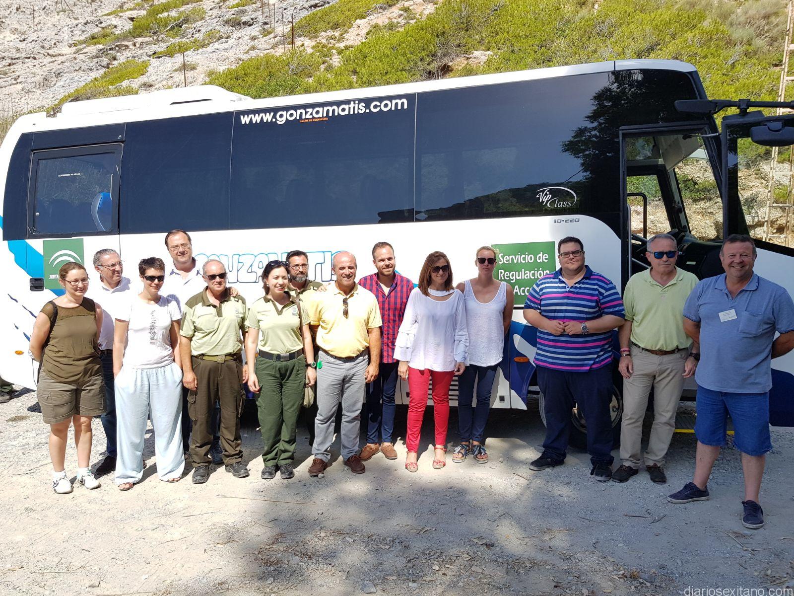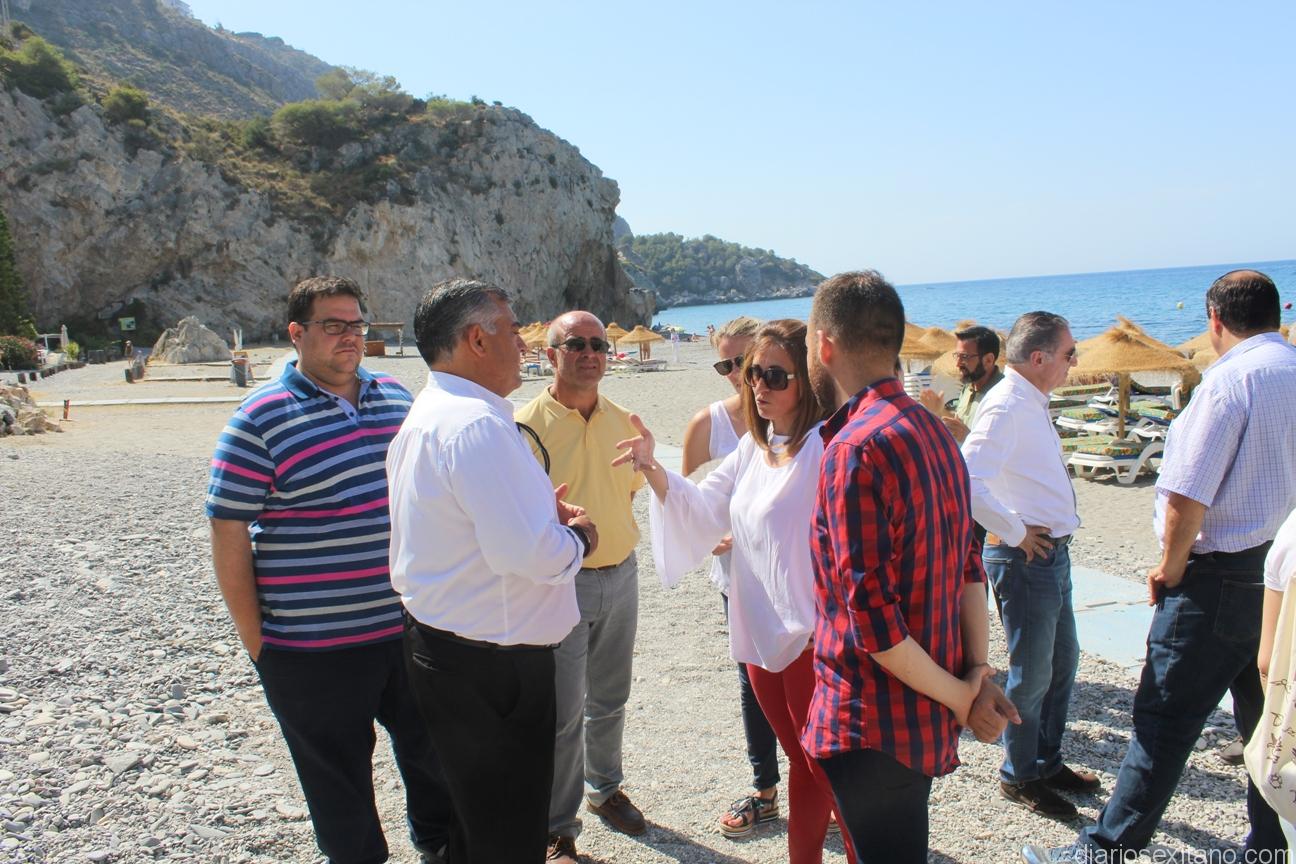 Los ediles de Medio Ambiente y Turismo del Ayuntamiento de Almuñécar, Luis Aragón y Rafael Caballero, junto a otros corporativos sexitanos del grupo socialista, acompañaron a la delegada de Medio Ambiente de la Junta, Inmaculada Oria, en la visita girada a Cantarriján para dar a conocer los servicios que llevó a cabo el transporte lanzadera desde la CN 340 a la playa naturista de Cantarriján, puesto en marcha hace una semana.