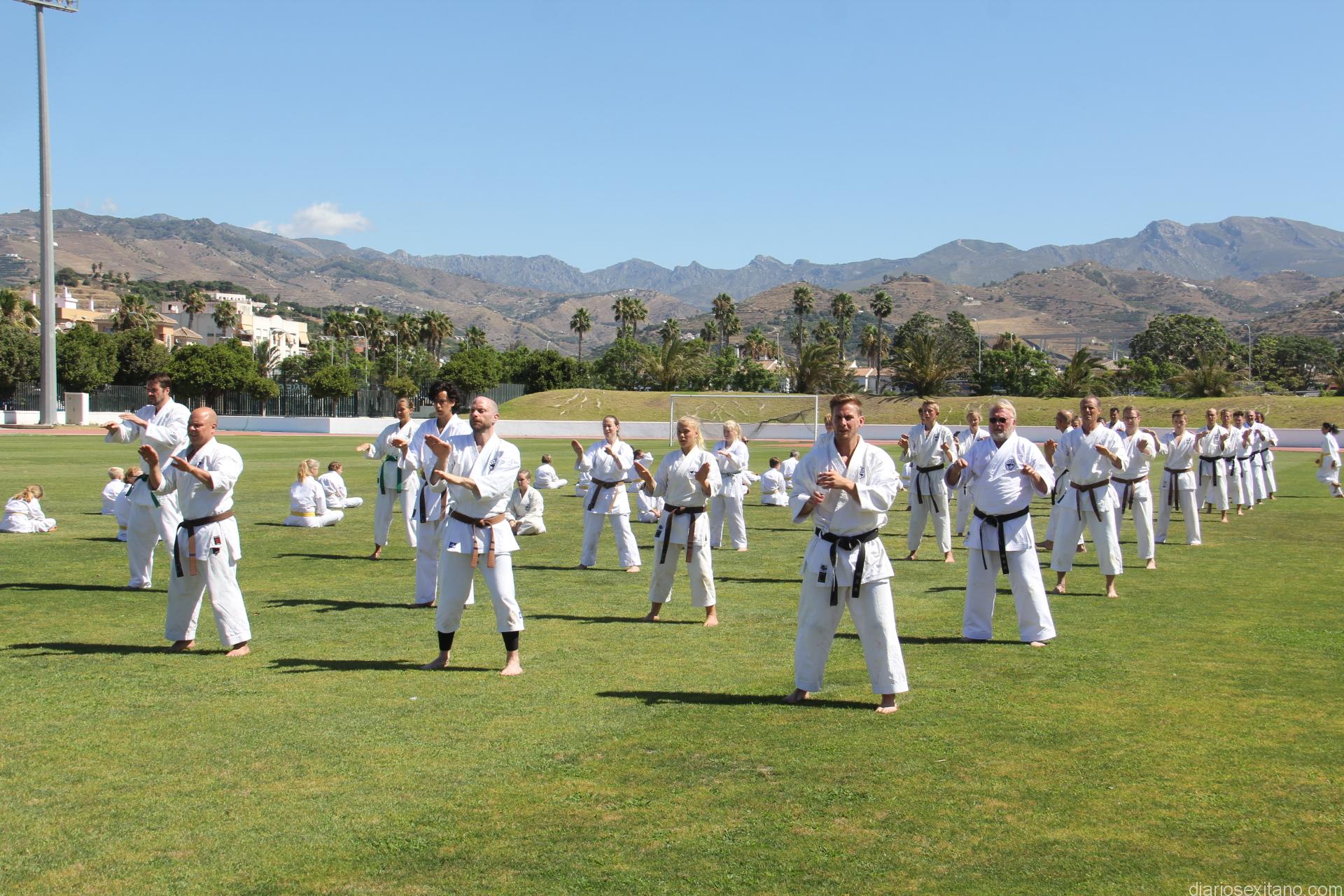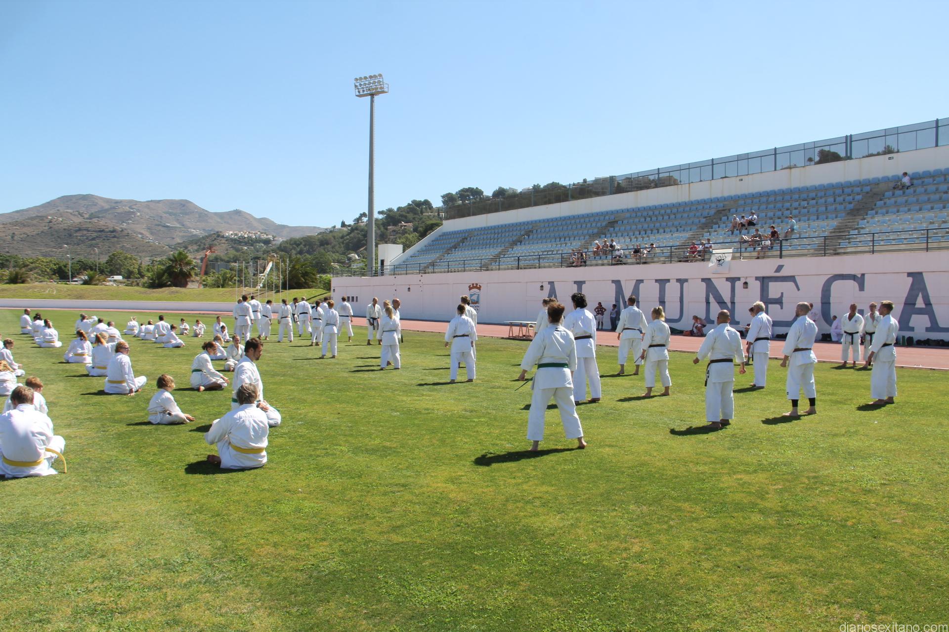 Cada cinco años el Club de Karate Goju Riu de Estocolmo (Suecia) realiza concentraciones fuera de su país. En esta ocasión, han elegido Almuñécar para llevar a cabo este tiempo de encuentros formativos y de ocio en la que participan 150 karatecas de todas las edades y categorías, según informó el concejal de Deportes Luis Aragón.