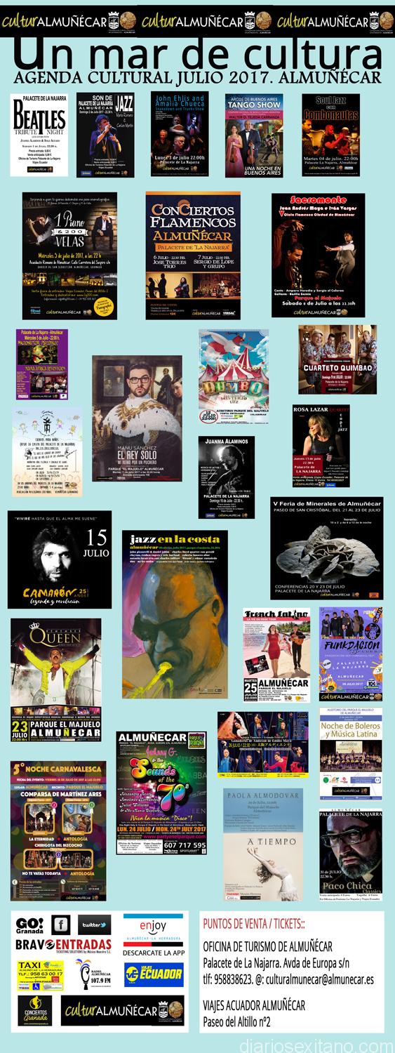 La Concejalía de Cultura del Ayuntamiento de Almuñécar que dirige Olga Ruano, coordina este mes de julio casi medio centenar de actividades repartidas en escenarios como el parque El Majuelo y los Jardines del Palacete La Najarra y las ultimas que aún están previstas en el auditorio de la Casa de la Cultura sexitana.
