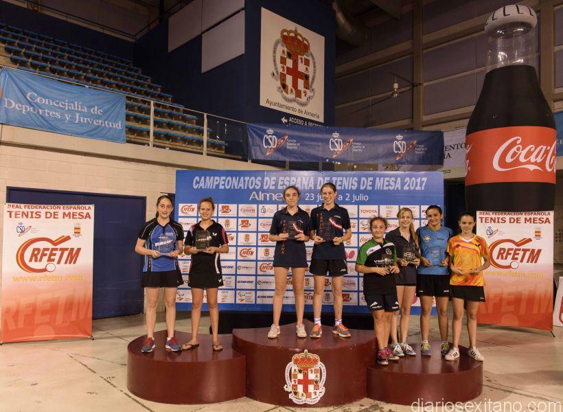 La palista sexitana, Lucía López, demostró una vez más que es uno de los valores destacados de tenis de mesa nacional en las categorías base y prueba de ello es que volvió a subir al podio en el Campeonato de España, celebrado el pasado fin de semana en tierras almerienses, al hacerse con la plata en la modalidad de dobles, formando pareja con la burgalesa, Elvira Rad. Ahí no quedó la cosa para Lucía ya que, formando equipo con el conjunto de Linares, consiguió quedar tercera clasificada y por tanto se hizo con el bronce, según informó el coordinador del CTM Almuñécar, Rafael Marín Linares.