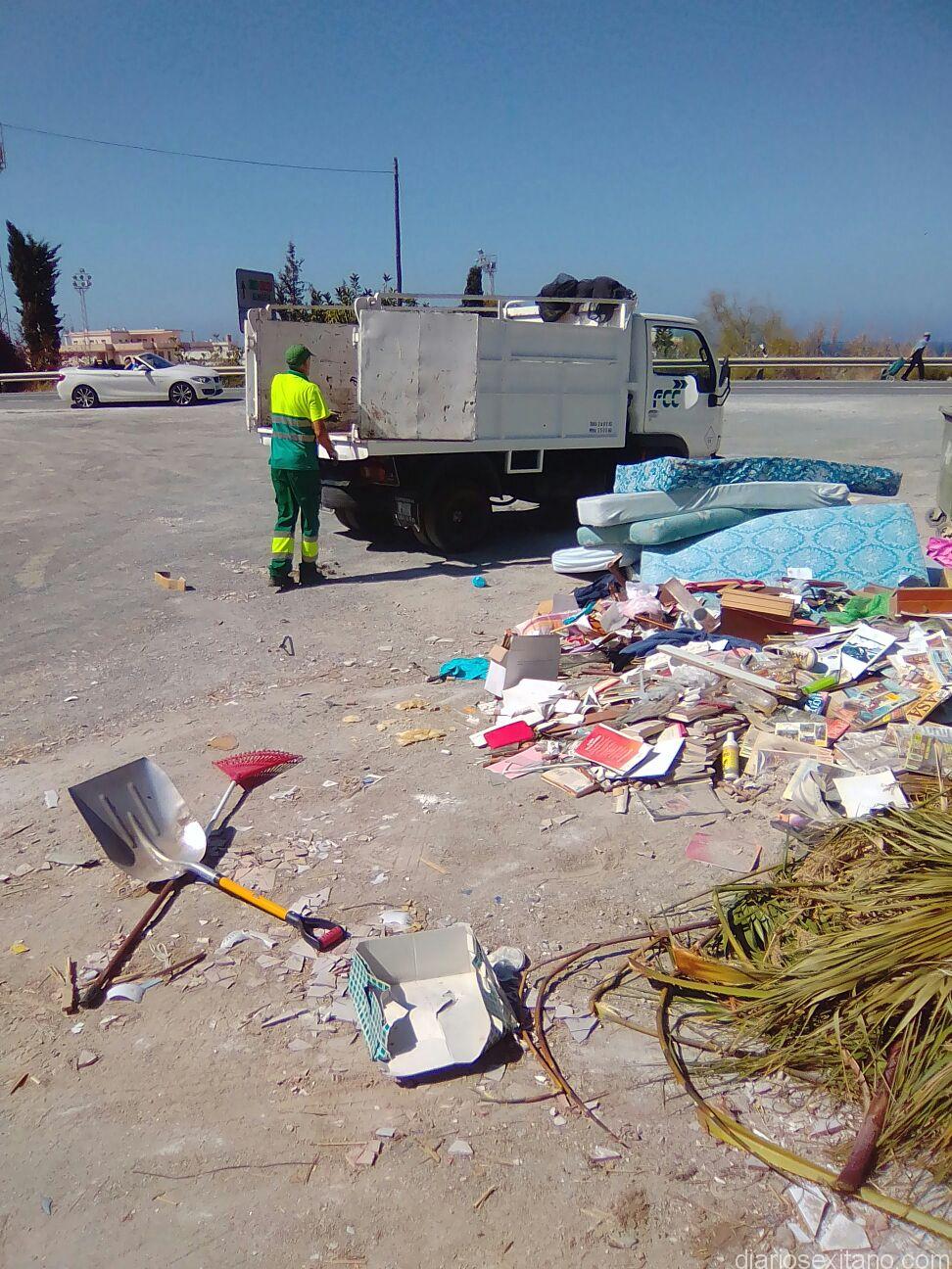La empresa concesionaria de limpieza pública de Almuñécar y La Herradura, FCC, ha retirado, entre este viernes y sábado, un total de 180 metros cúbicos de enseres domésticos de las calles, ya que han sido cinco contenedores de 20 m3 y otros dos más de 40 m3 lo que se ha necesitado para el transporte hasta la planta de transferencia, según ha informado la representa local de la empresa, Wafitta Asilah