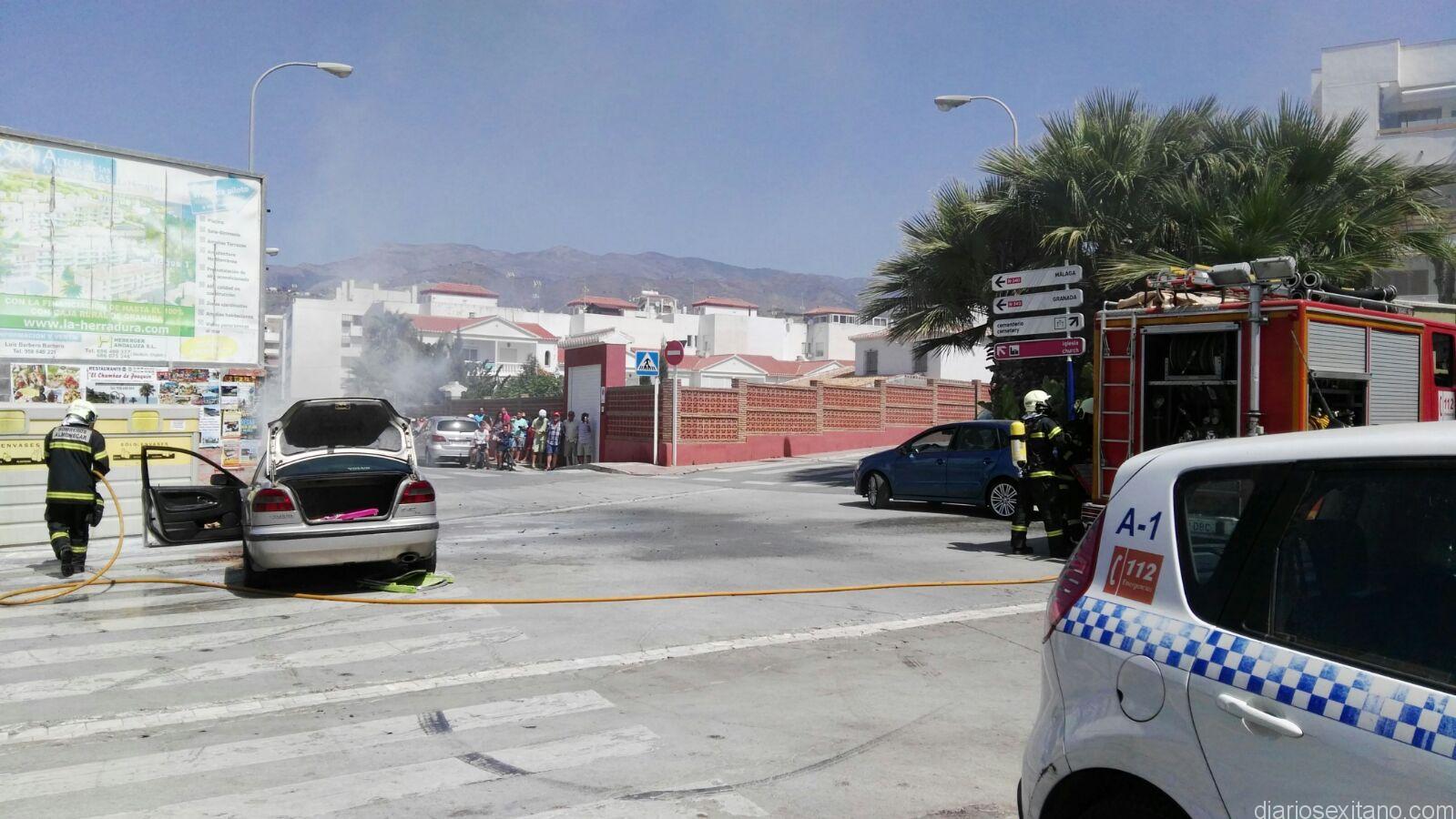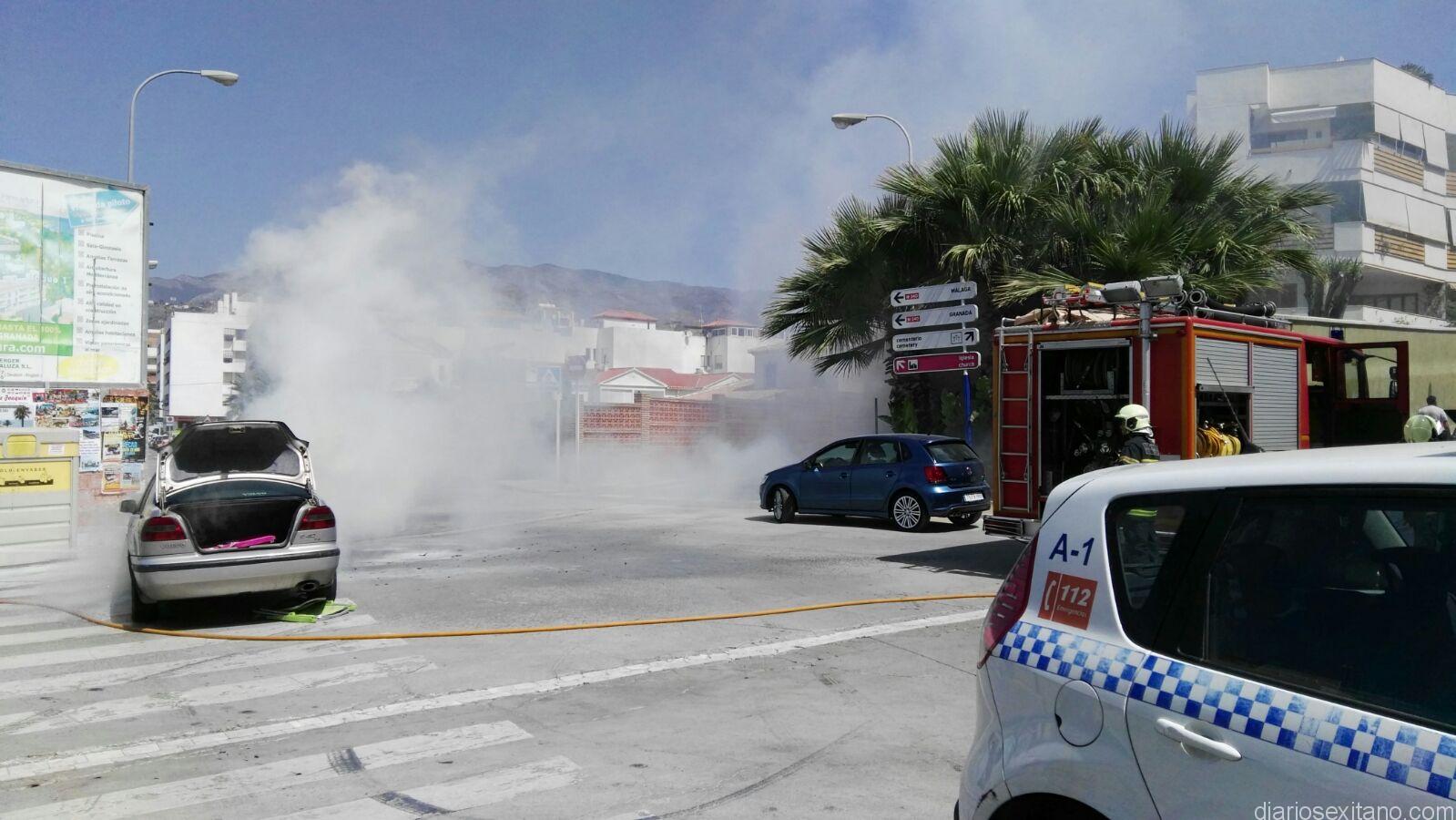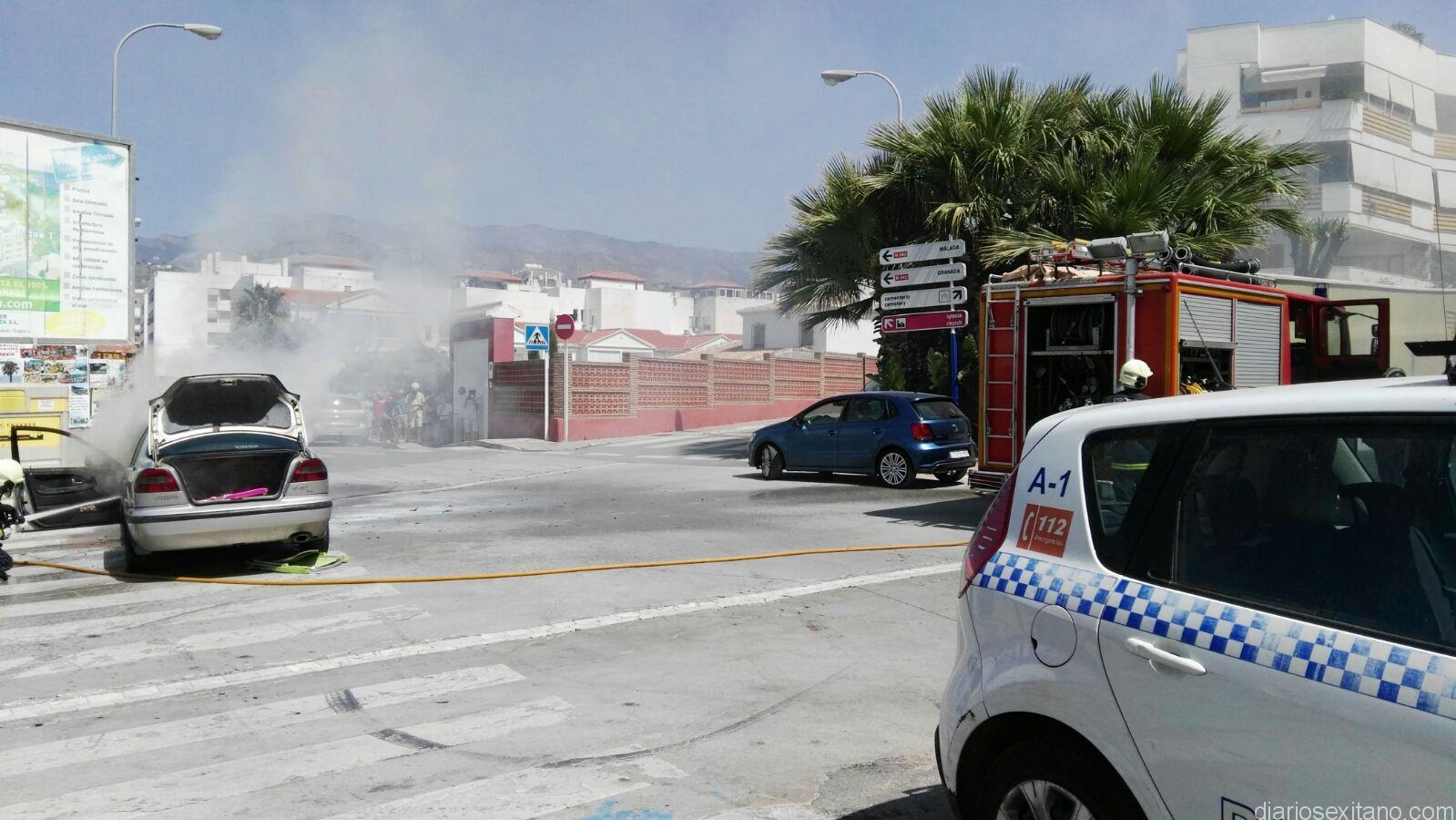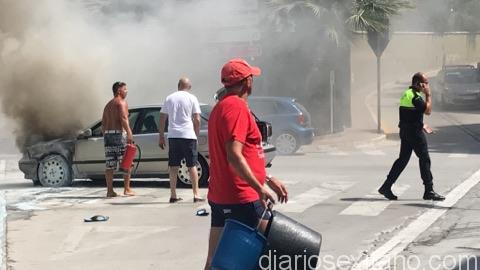 El incendio de un vehículo cuando circulaba por el cruce del Barranquillo pasadas la 12,15 horas de este domingo, moviliza a vecinos, Policía Local y Bomberos que tratan de sofocarlo en estos momento.