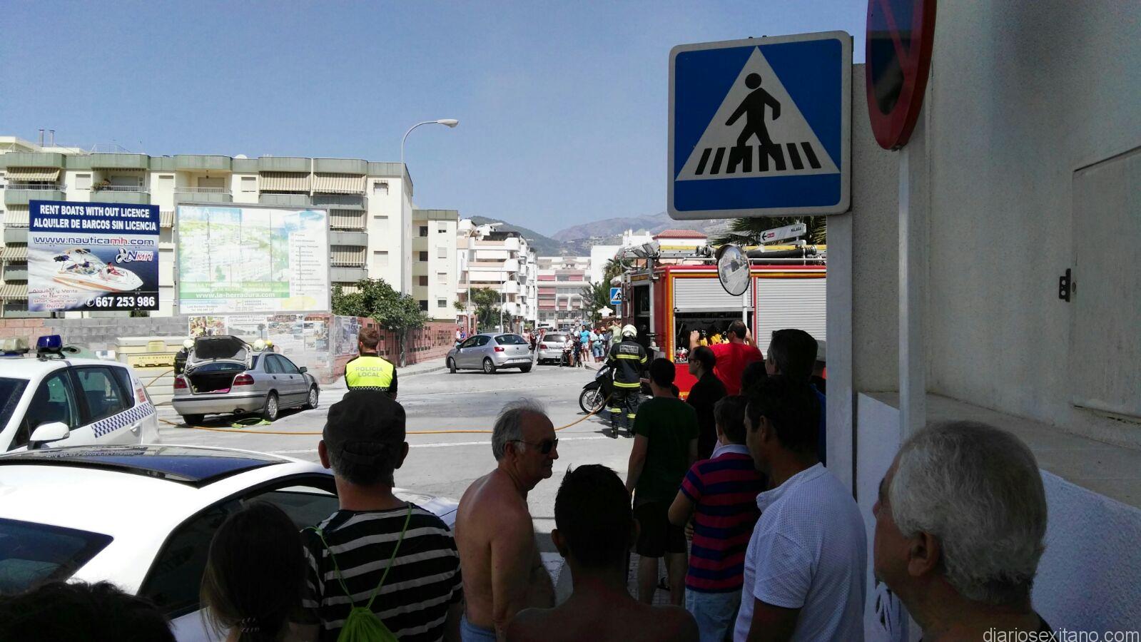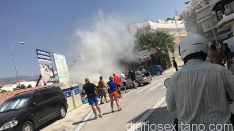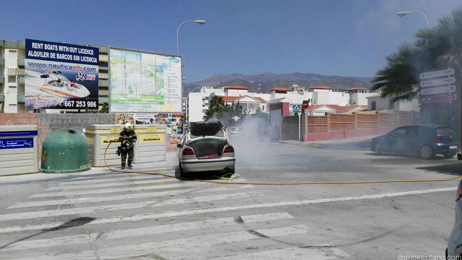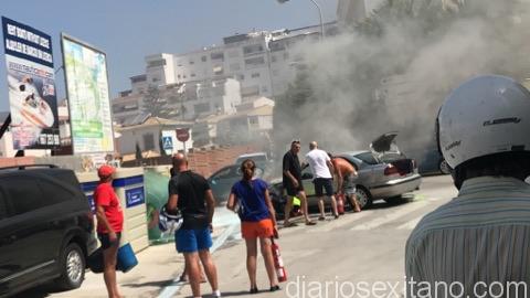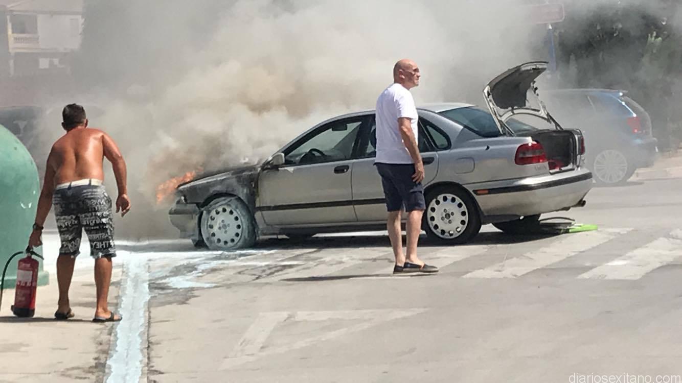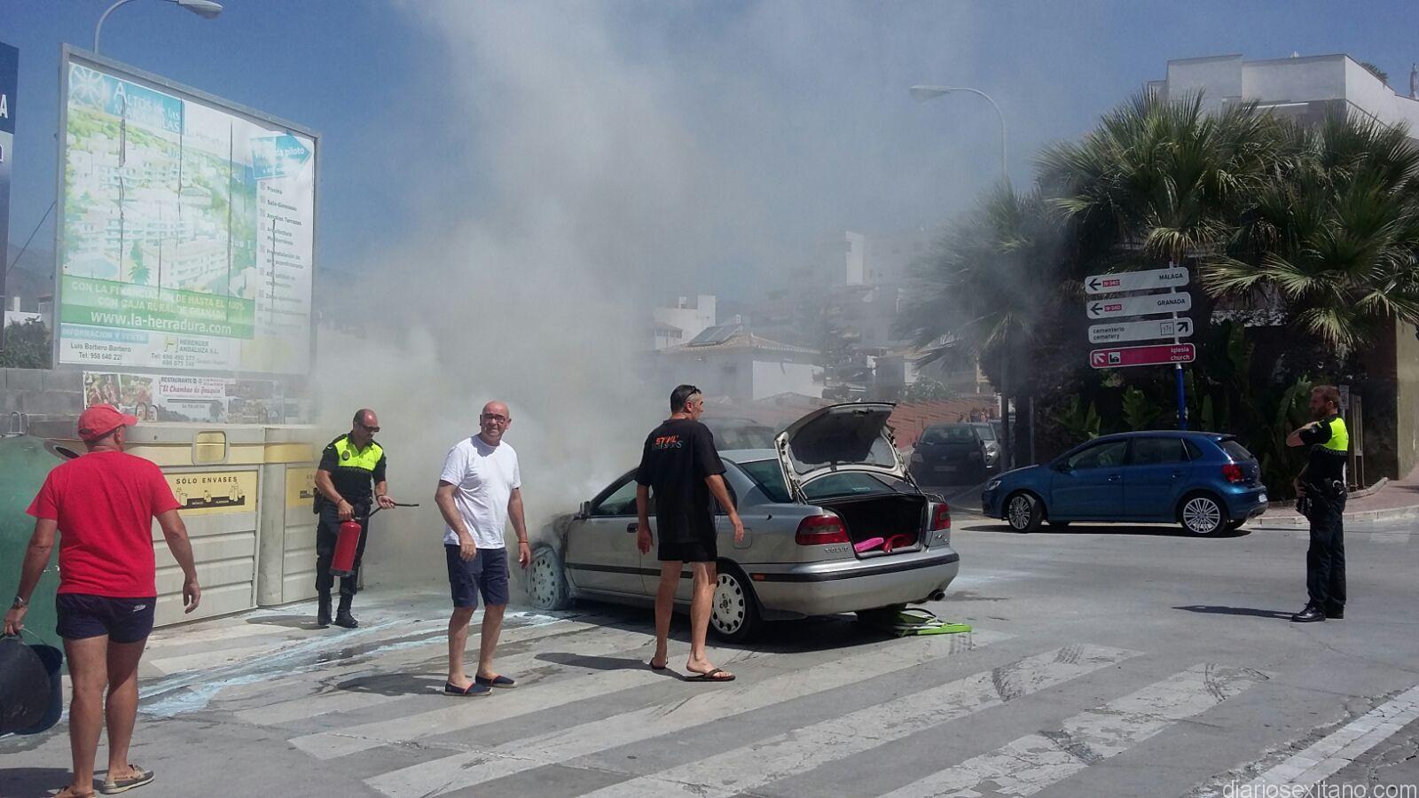 El incendio de un vehículo cuando circulaba por el cruce del Barranquillo pasadas la 12,15 horas de este domingo, moviliza a vecinos, Policía Local y Bomberos que tratan de sofocarlo en estos momento.