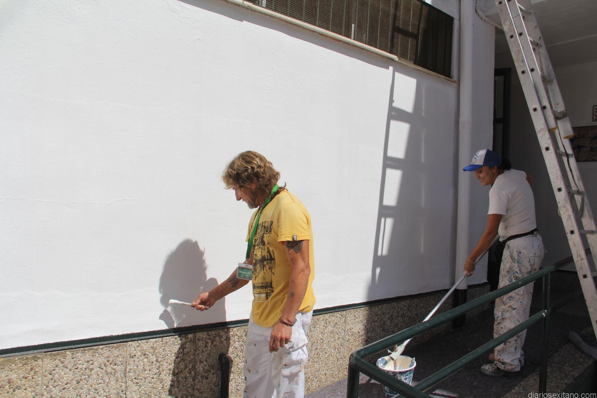 “En estos momentos son catorce empleados los que se encargan del pintado bajo la coordinación de los responsables municipales de Mantenimiento. Son pintores mayores y menores de 30 años, que se han contratado a través de los citados programas de la Junta y el Fondo Social Europeo así como el programa social de ayuda a la contratación”, explicó Alba.