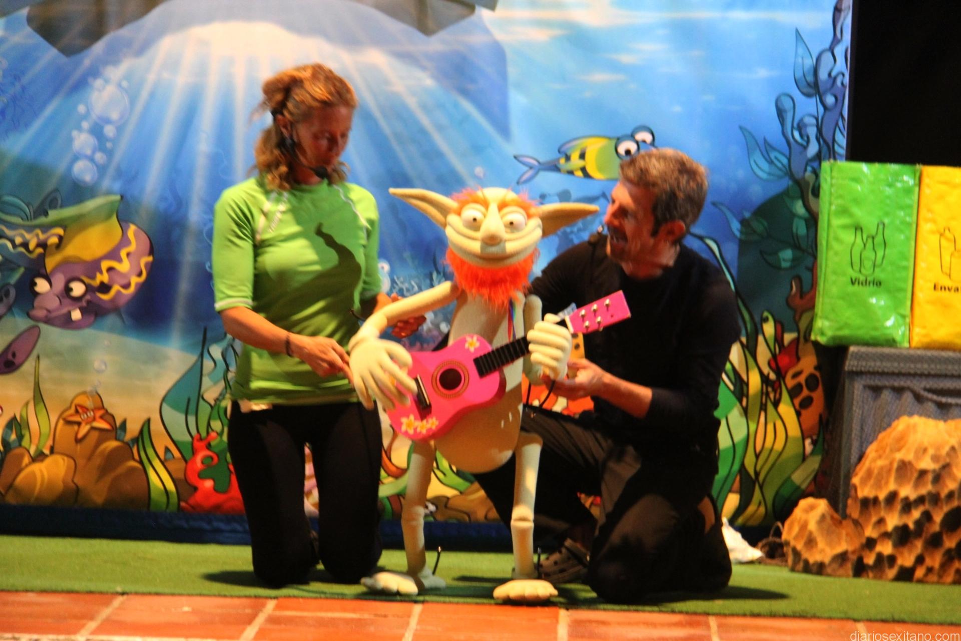 Anoche, la compañía gaditana “Pequeños Duendes” puso en escena la obra “Pezciclaje”, con una apuesta por la reutilización de los residuos urbanos y donde el reciclaje cobró la importancia necesaria para concienciar al público de preservar el mar y la naturaleza.