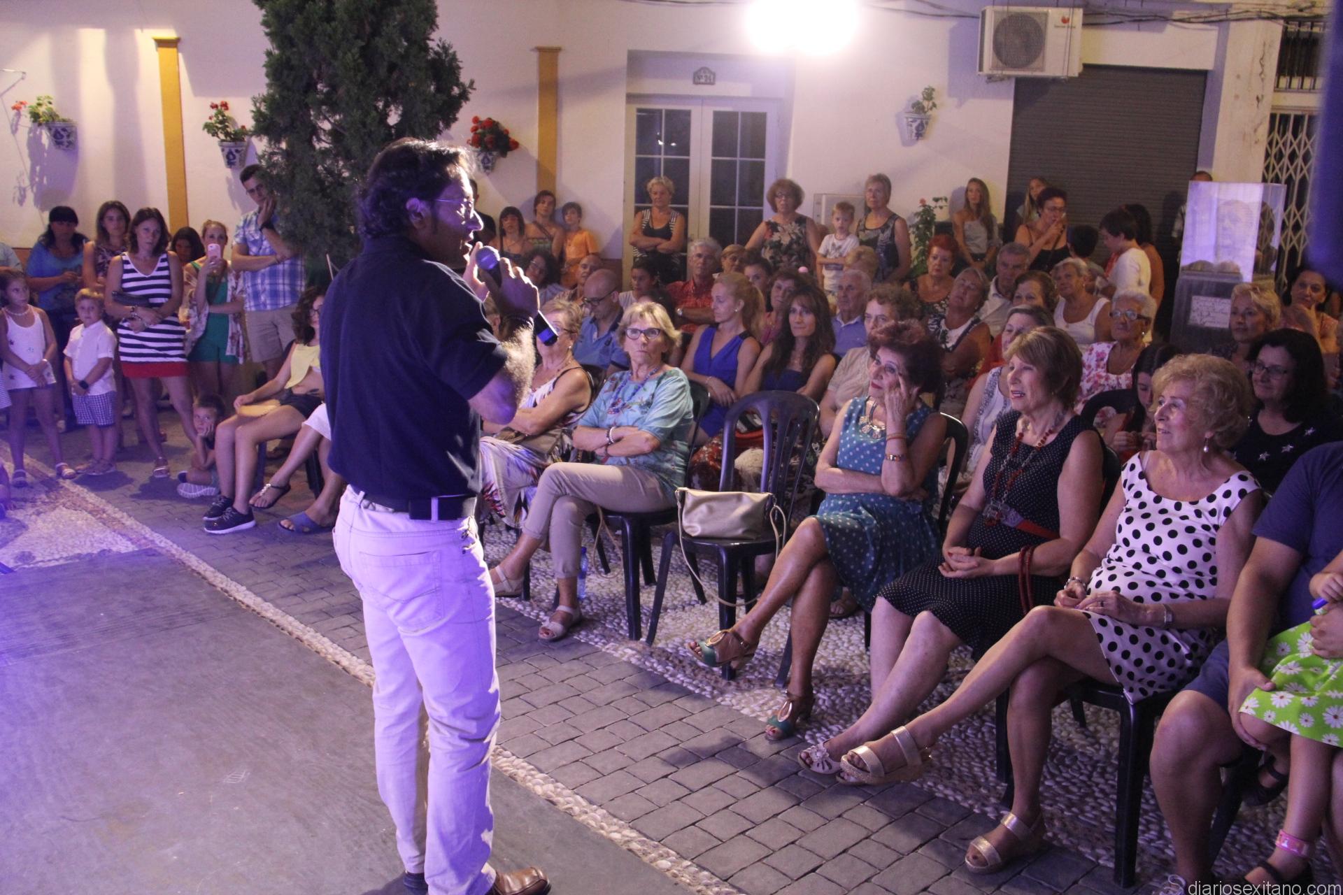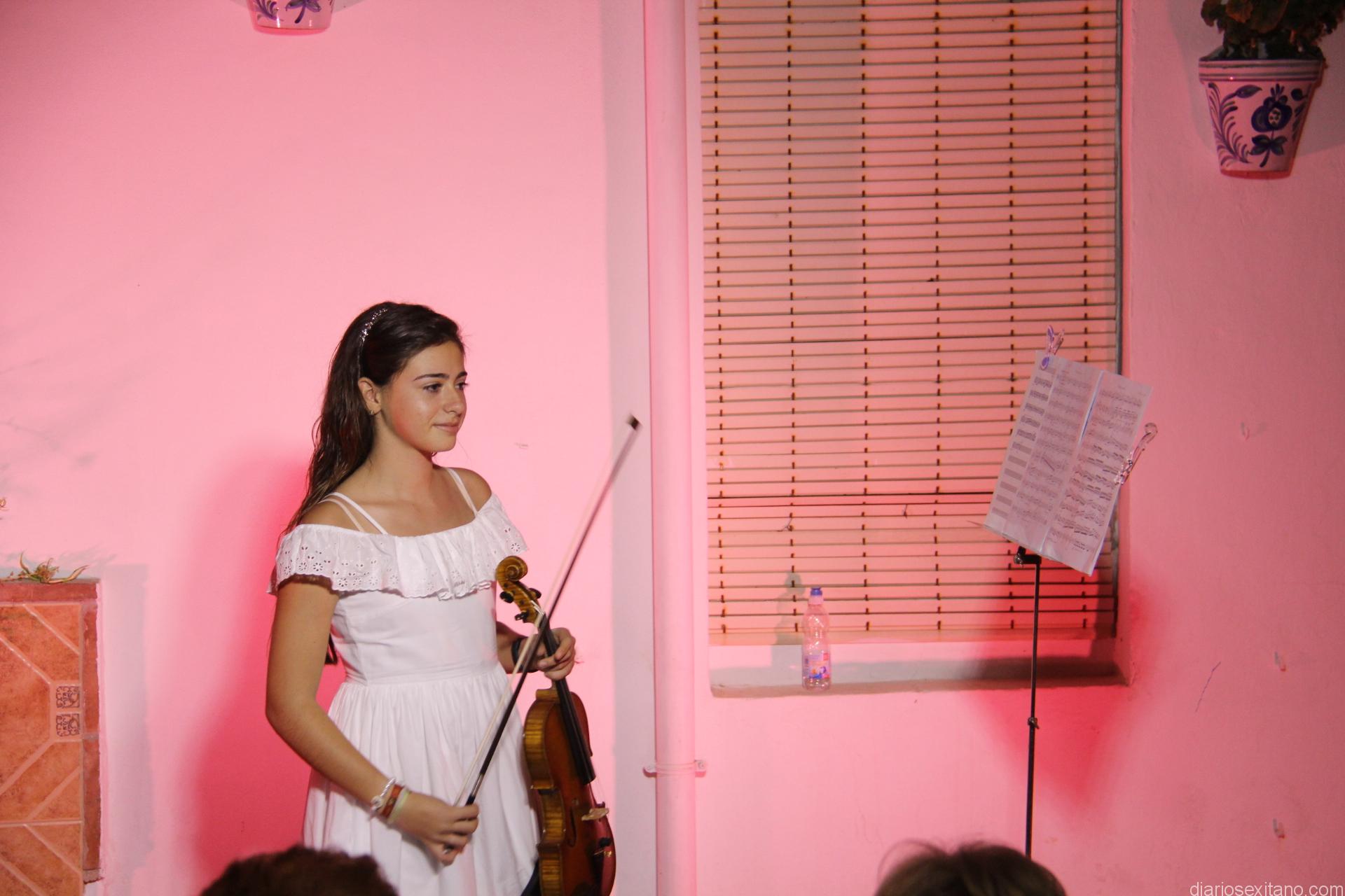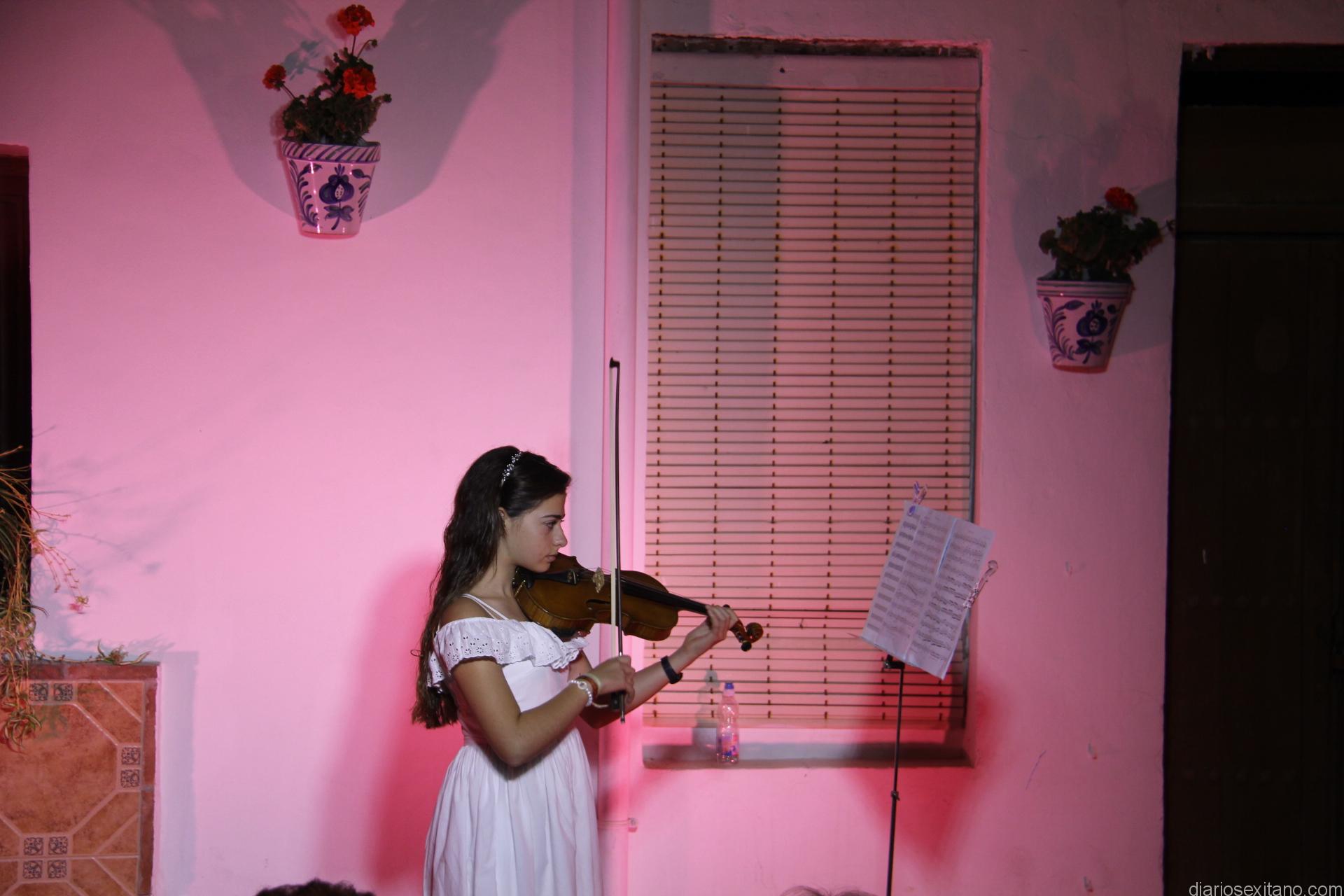 Tras la celebración de la segunda obra de títeres en el Festival con la obra “Pezclijaje”, pequeños y mayores se desplazaron a la plazoleta “Pepe Gámez”, donde Reinaldo Jiménez protagonizo un cuentacuentos y adivinanzas que hizo partícipe al público asistente y cerró la noche la actuación de la violinista local, Mercedes Barné, que interpretó tres bellas obras poniendo el broche con la obra “Ave María”.