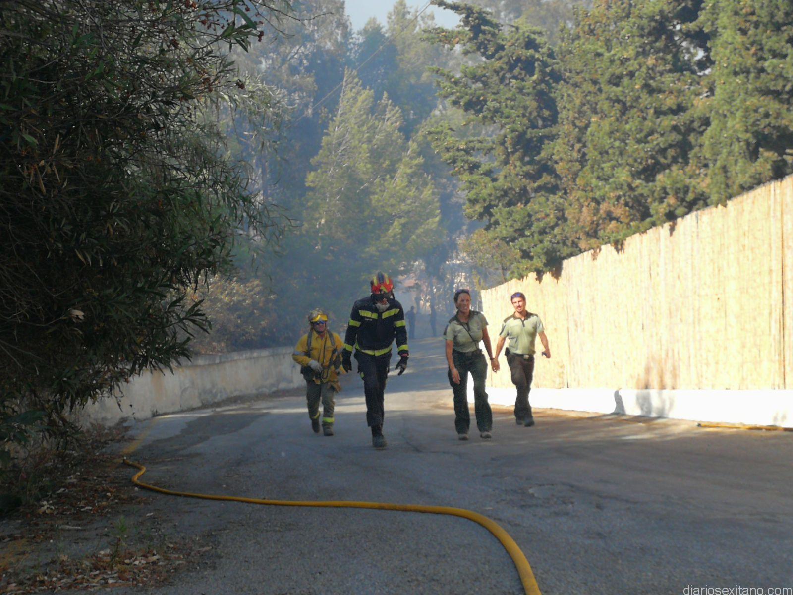 Hasta la zona, además de la Policía Local, encabezada por el Jefe Local, Manuel Ledesma, acudieron Bomberos de Almuñécar, Guardia Civil y Protección Civil, junto con los responsables municipales de Seguridad Ciudadana y Medio Ambiente, Juan José Ruiz Joya y Luis Aragón, respectivamente. A los citados efectivos se sumaron dos retenes del Infoca y una motobomba que ayudaron a dar por controlado y extinguido el fuego.