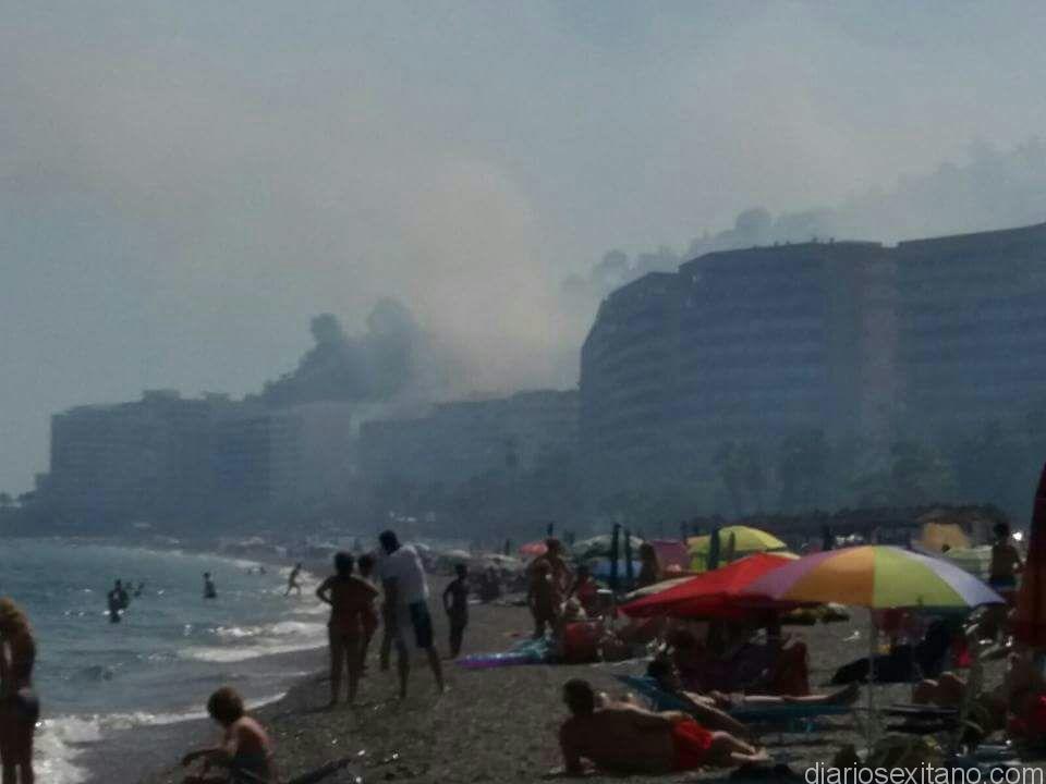 El humo era visible desde toda la zona este del municipio sexitano y alertó a los residentes en la zona y bañistas que no dejaron de captar el momento.