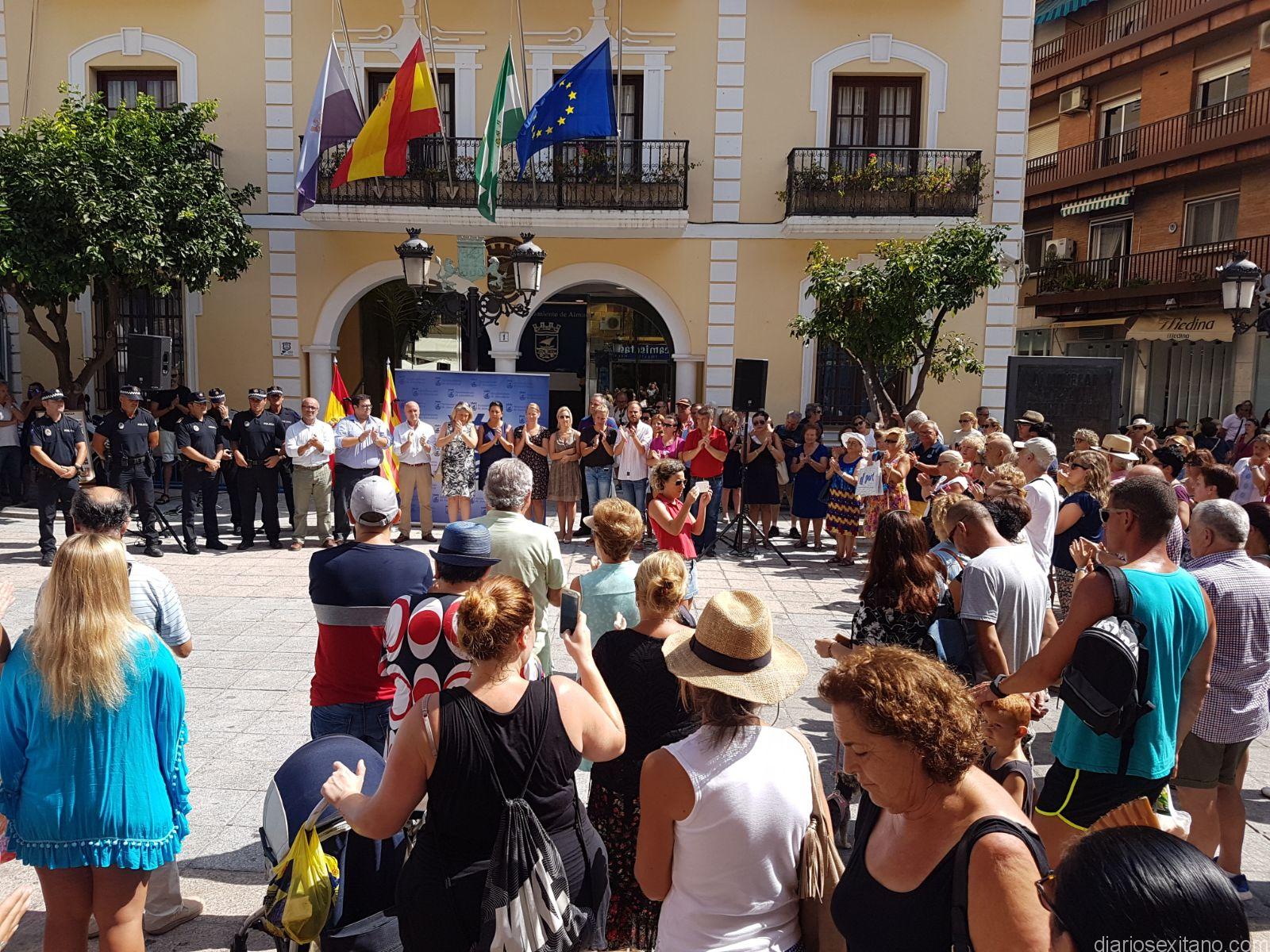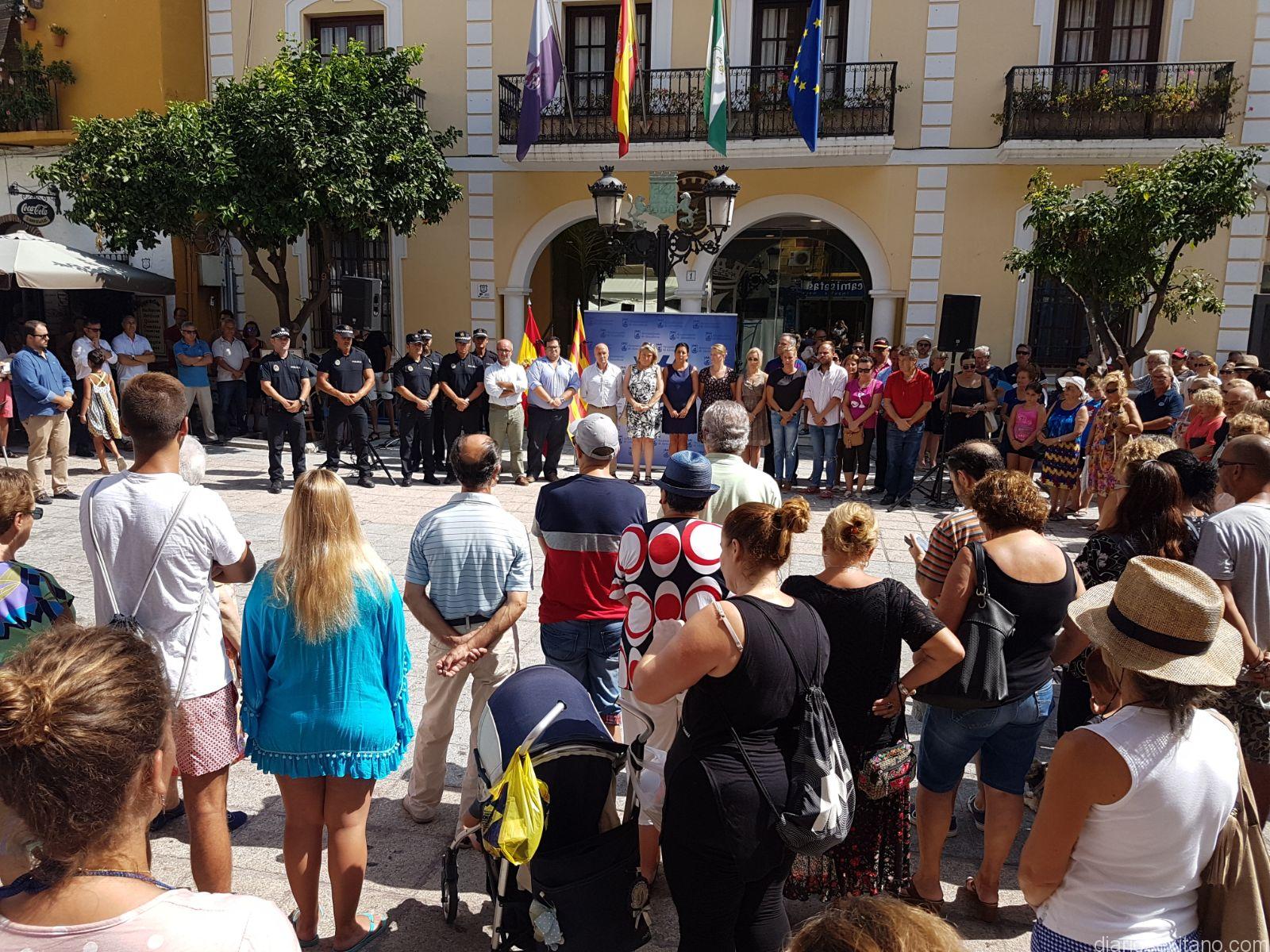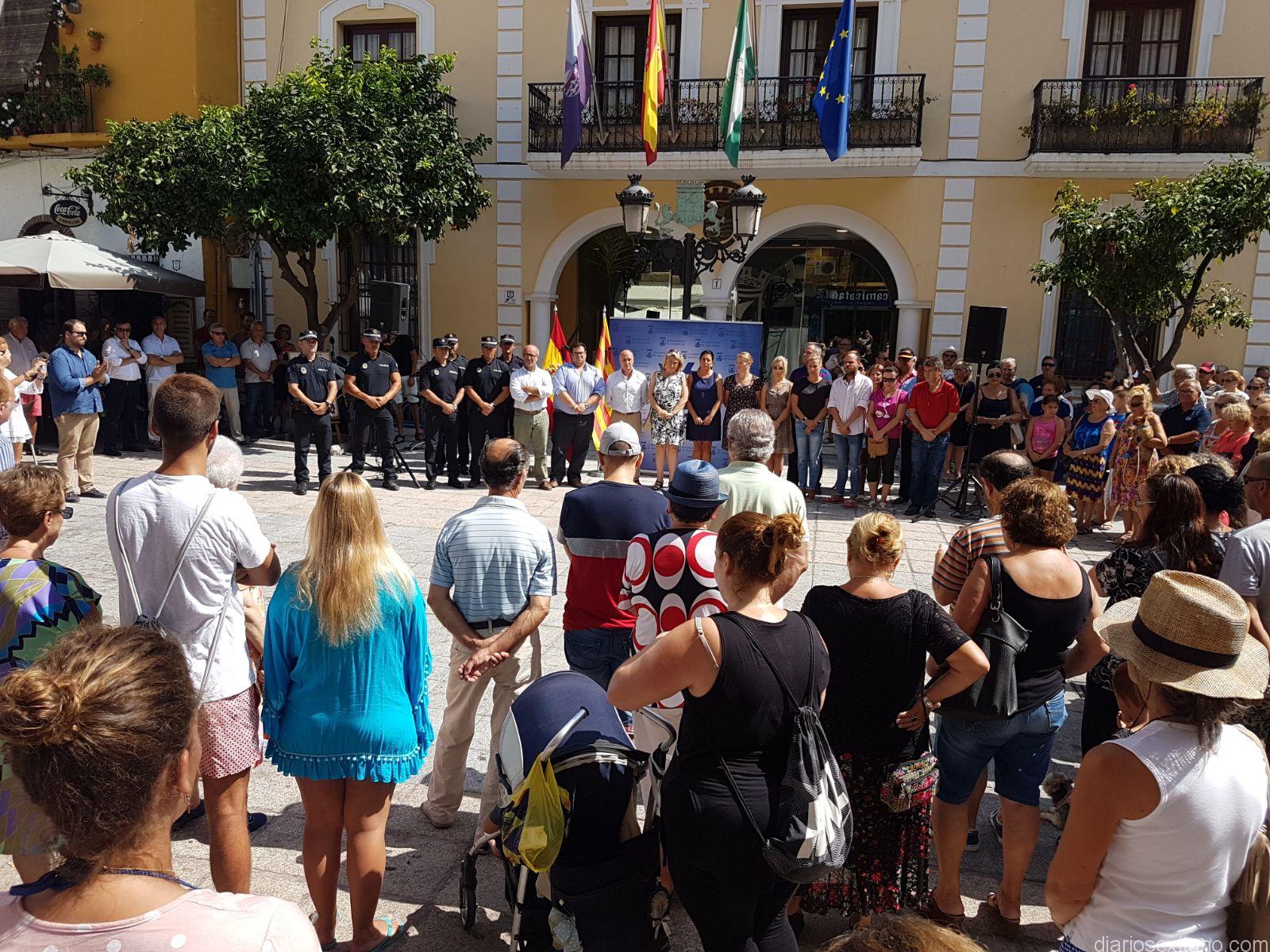 Unos doscientos vecinos y numerosos turistas se ha sumado a la concentración celebrada en la plaza de la Constitución y las puertas del Ayuntamiento de Almuñécar en solidaridad con las víctimas del atentado y el pueblo de Barcelona.