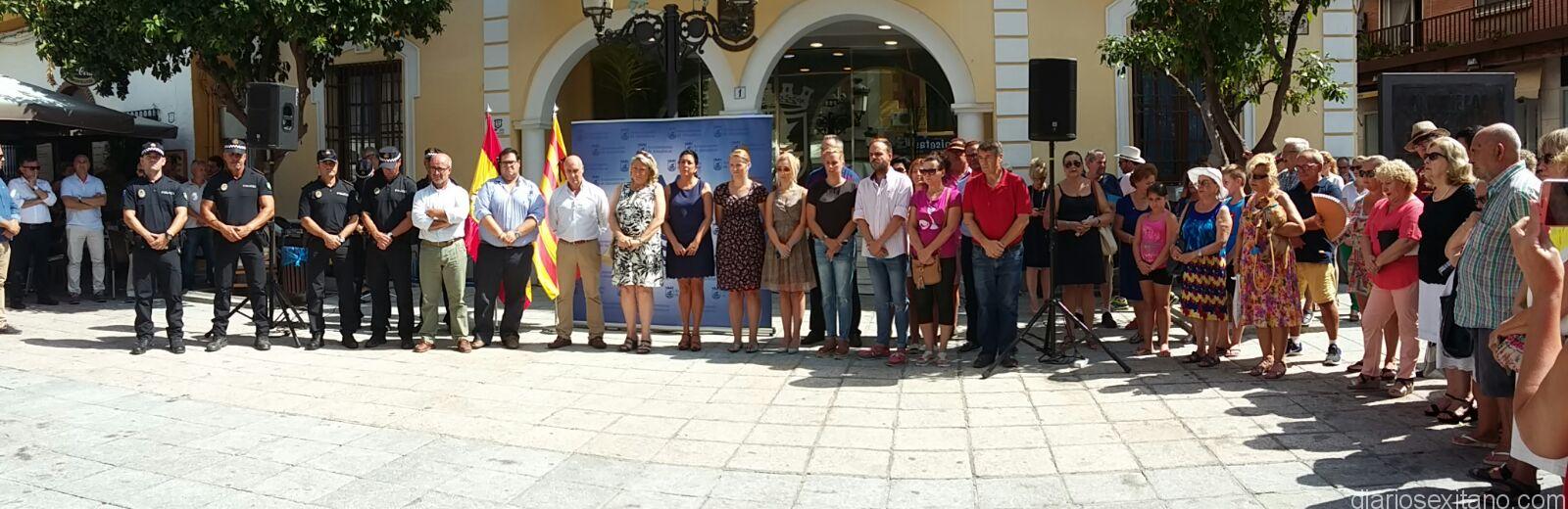 El acto, presidido por la alcaldesa, Trinidad Herrera Lorente, estuvieron presentes representantes de todos los grupos políticos en la Corporación Municipal ante la llamada que anoche lanzaba al primera edil sexitana. Herrera ha condenado el atentado terrorista que ha tuvo lugar ayer en Barcelona y ha mostrado su «más firme repulsa por este acto violento y sin sentido que quiebra la paz y la convivencia”.