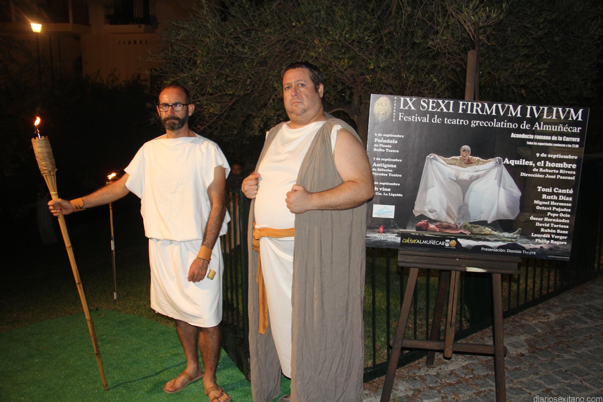 Más de 300 personas aplaudieron anoche al grupo gaditano del Puerto del Puerto de Santa María Balbo Teatro en la apertura del IX Festival de Teatro Grecolatino de Almuñécar “Sexi Firmum Iulium” con la obra de Plauto, “Pseudolo”, bajo la dirección de Paco Crespo.