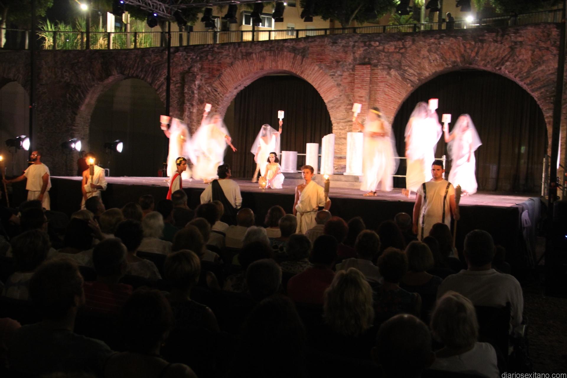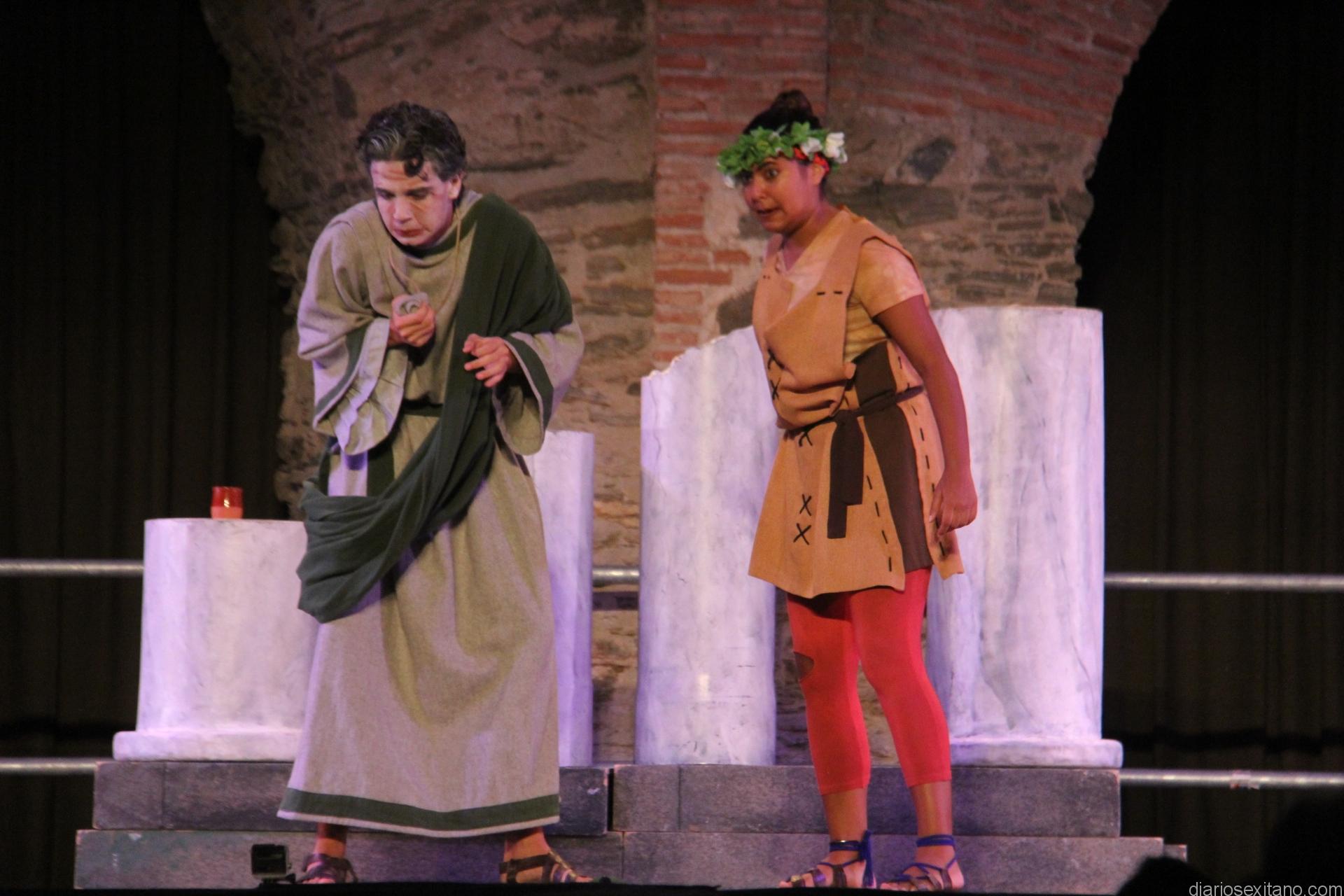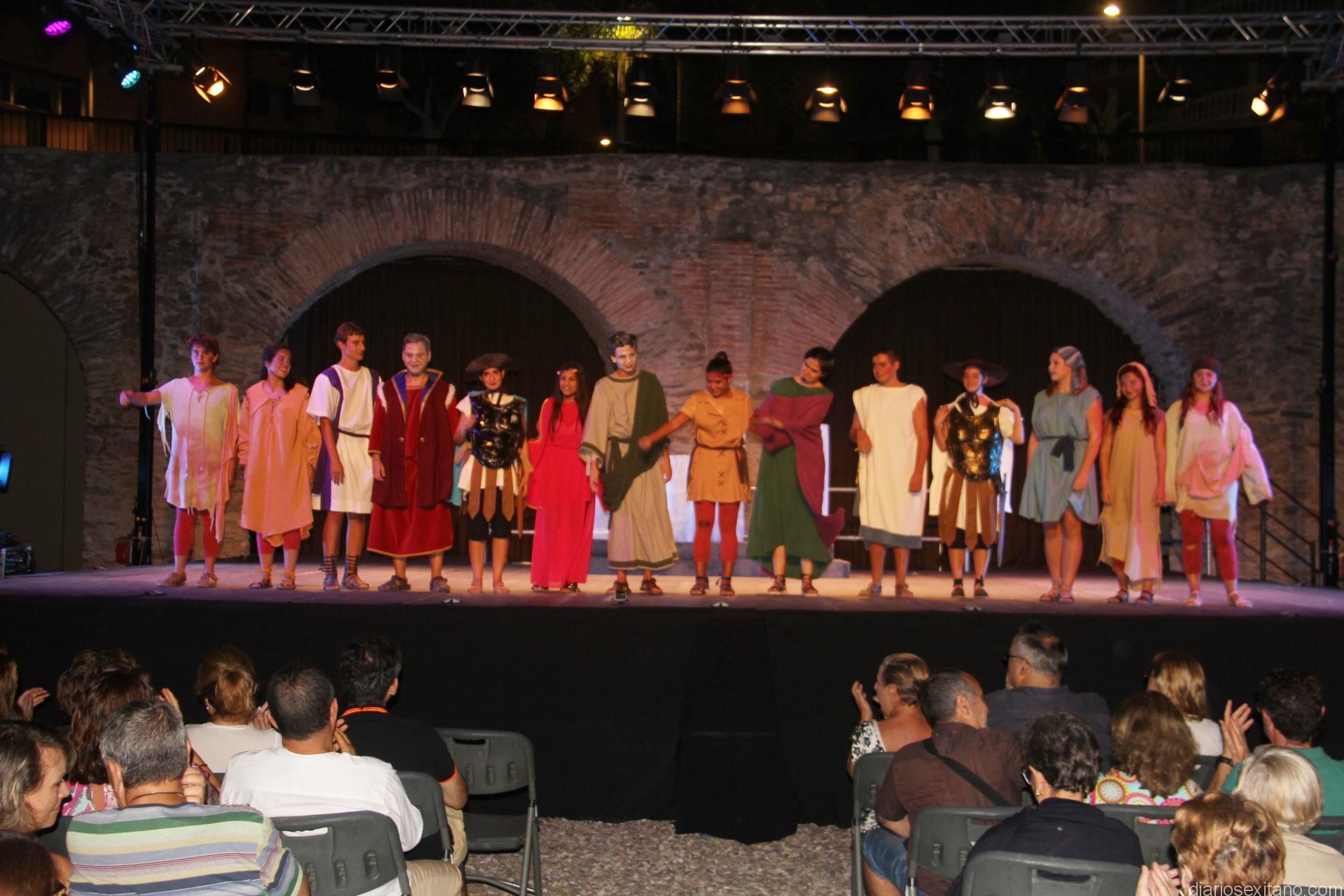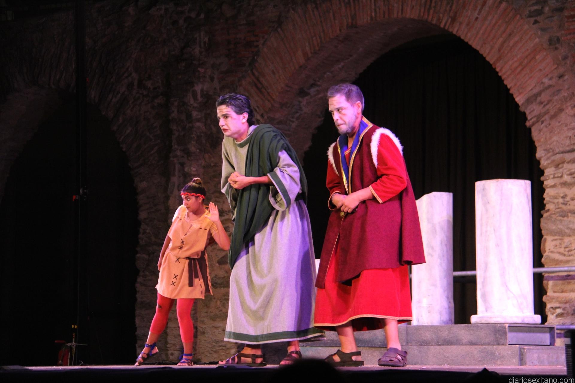 La actuación de la comedia se representó en el escenario habilitado en el complejo monumental del acueducto y termas romanas del centro de Almuñécar, que un año más acoge este evento de máxima categoría en su género.