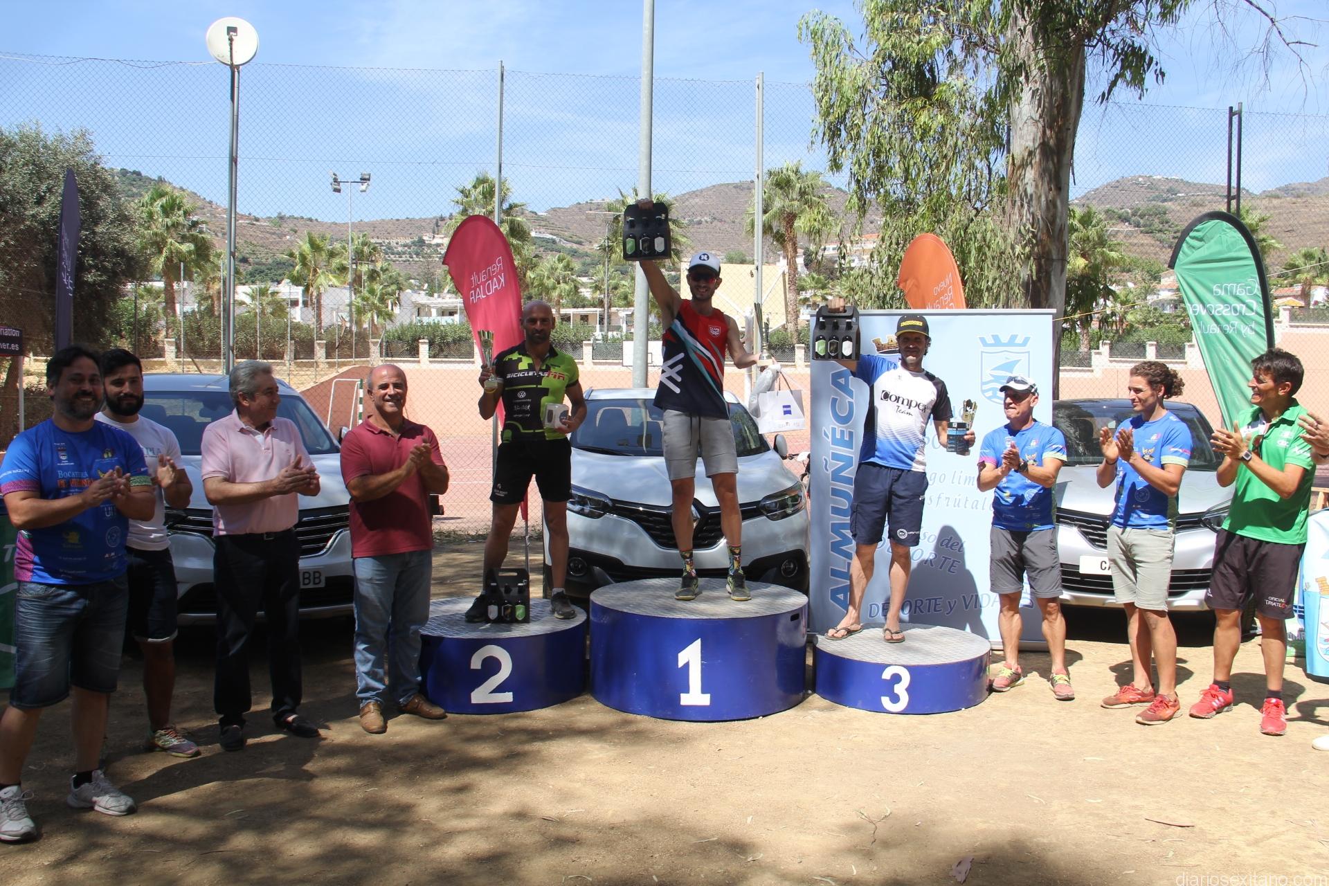 Juan Andrés Cano Cuevas (CD Sapiens Human Runner) y Manolo Salinas Puertas (CTR 360) con un tiempo ambos de 1 hora, 36 minutos y 37 segundos junto Nieves Cantos Bertos (CD Triatlón Granada) que empleo 2 horas 13 minutos y 41 segundos, fueron los ganadores absolutos, tanto masculino como femenino, en el II Triatlón Cros Sexitano #387, que reunió, en el parque El Pozuelo de Almuñécar, a casi un centenar de atletas procedentes de distintas provincias.