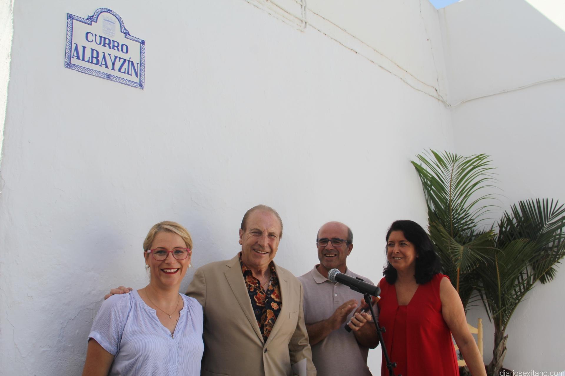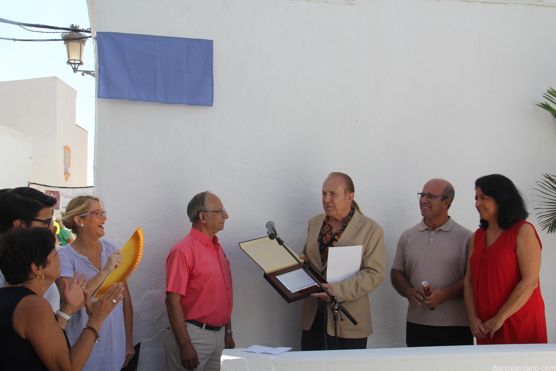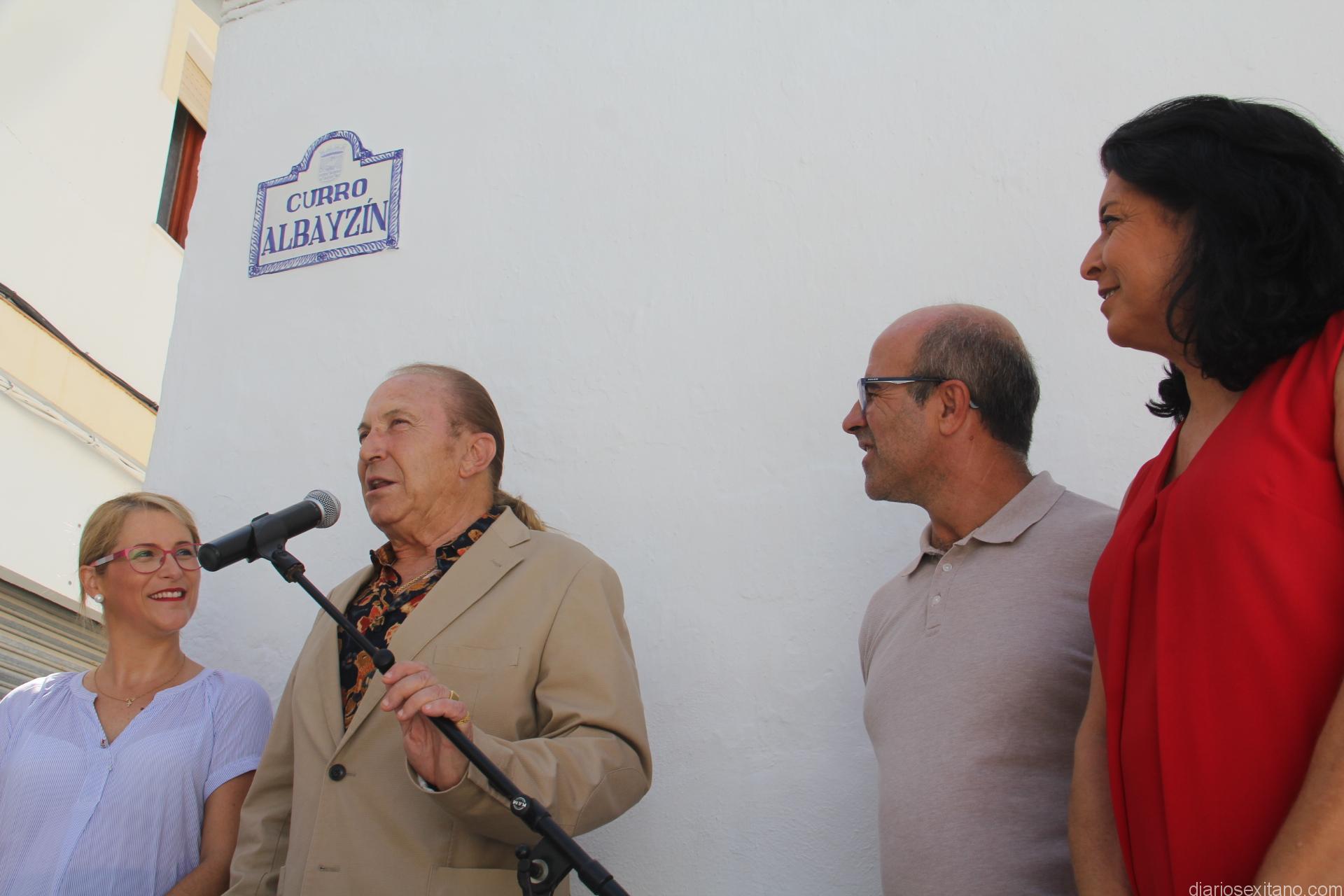 El artista descubrió la placa que, a propuesta de la Peña Curro Albaicín y aprobado por el pleno municipal, que da nombre a la misma; tras agradecer el homenaje leyó una poesía dedicada a la localidad sexitana.