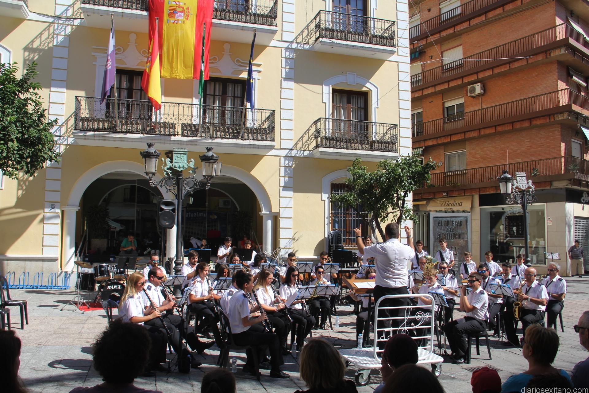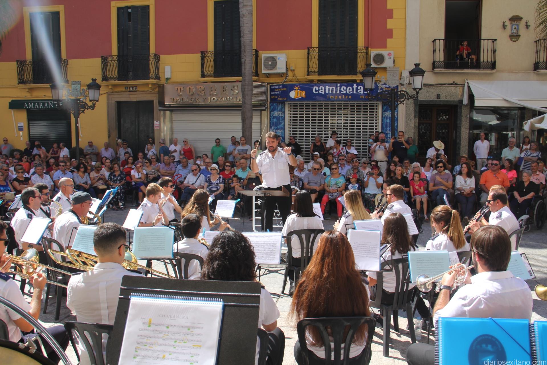 Bajo un sol de justicia en la céntrica plaza de la Constitución, cientos de personas disfrutaron de la música que interpretaron los músicos sexitano con varias novedades en el repertorio.