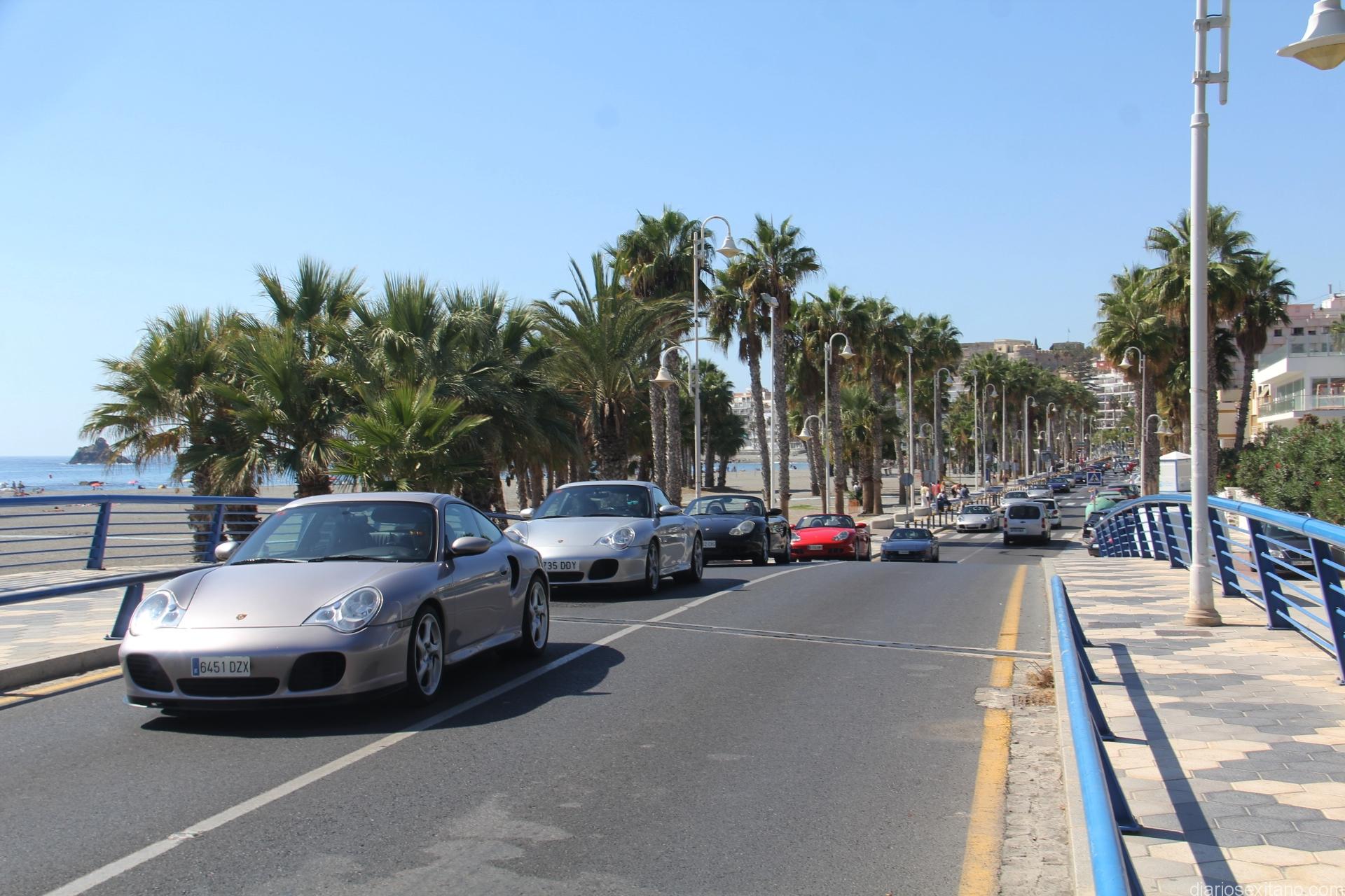 Después de una copa de bienvenida a los vehículos Porsches, escoltados por la Policía Local, realizaron un pasacalle por el centro de Almuñécar que despertó la admiración e interés de los almuñequeros y visitantes al ver reunido a tantos modelos de la misma marca.