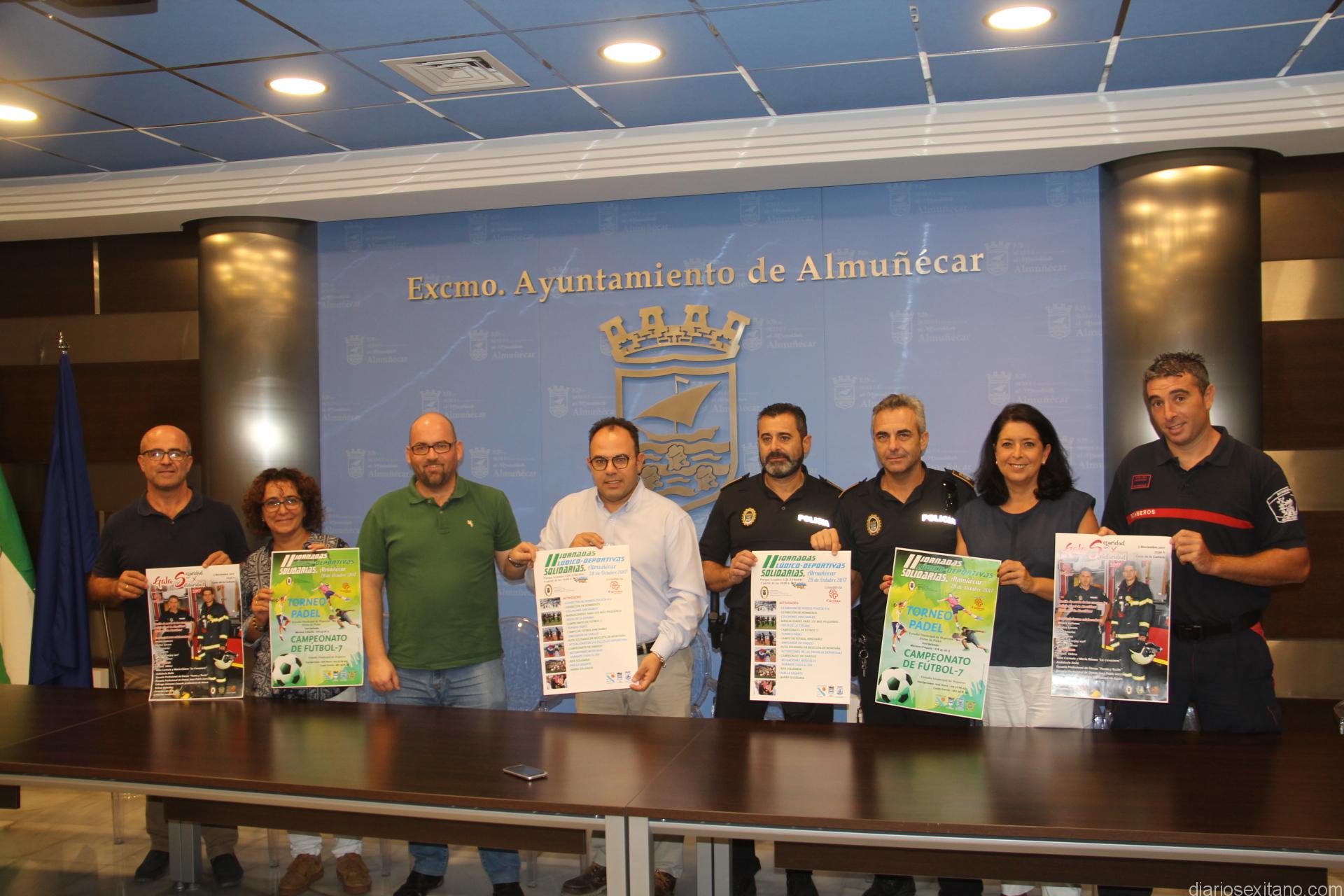 Hoy se ha presentado las II Jornadas Lúdico-Deportivas y Solidarias de la Policía Local y Bomberos de Almuñécar contando con la presencia de los ediles de Seguridad Ciudadana, Deportes y Bienestar Social, Juan José Ruiz Joya y Luis Aragón y Mari Carmen Reinoso, respectivamente, así como curar párroco Vicente Valero y coordinadora de Cáritas Parroquial, Inmaculada del Corral, junto con los responsables de Policía Local y Bomberos, Manuel Ledesma y Antonio Ortuño, respectivamente, y el policía y coordinador del evento, Juan José Medina.