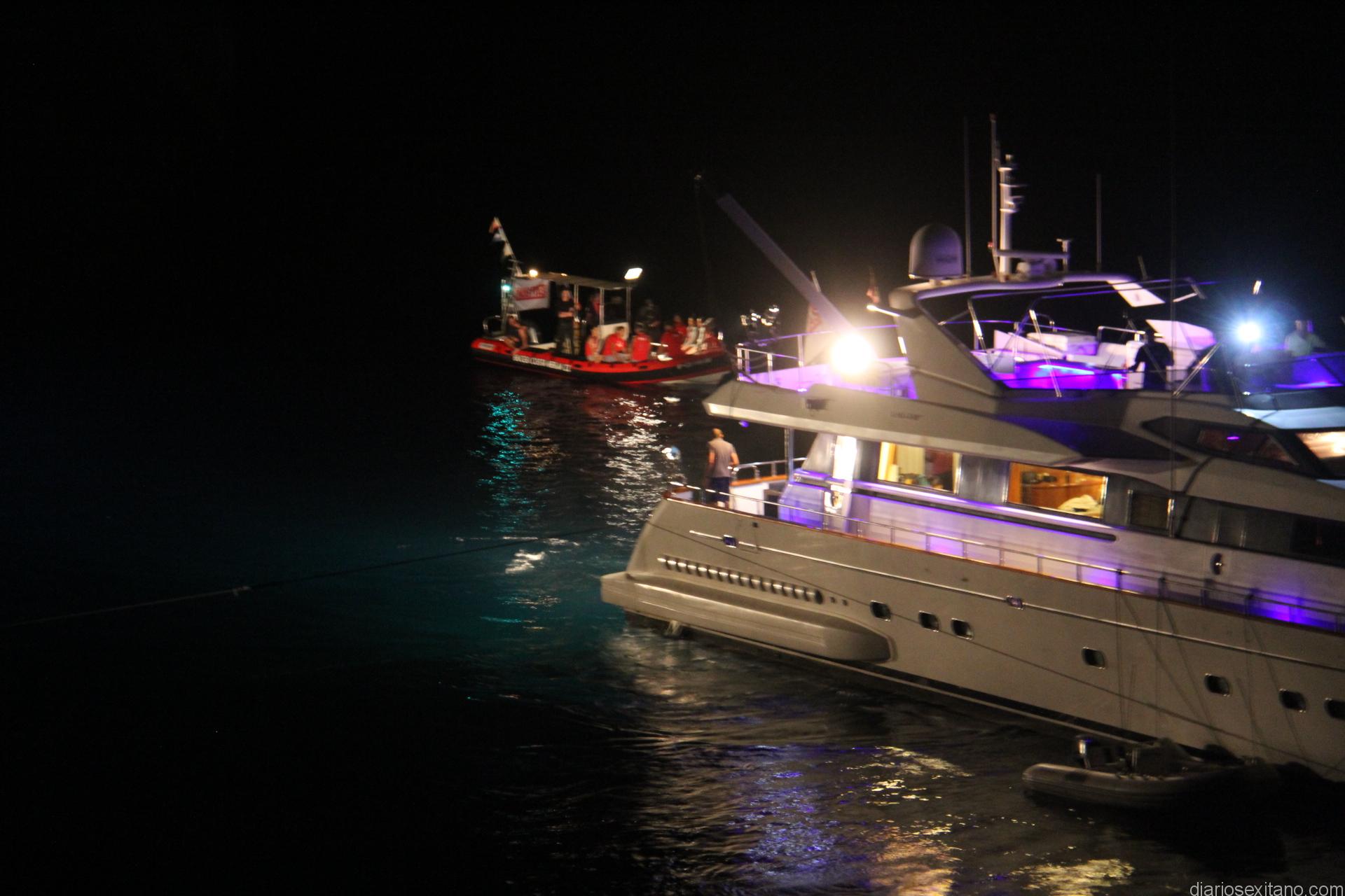 En la bahía herradureña y desarrolló una espectacular grabación nocturna con yates y varias embarcaciones y el puerto deportivo acogió a los participantes.