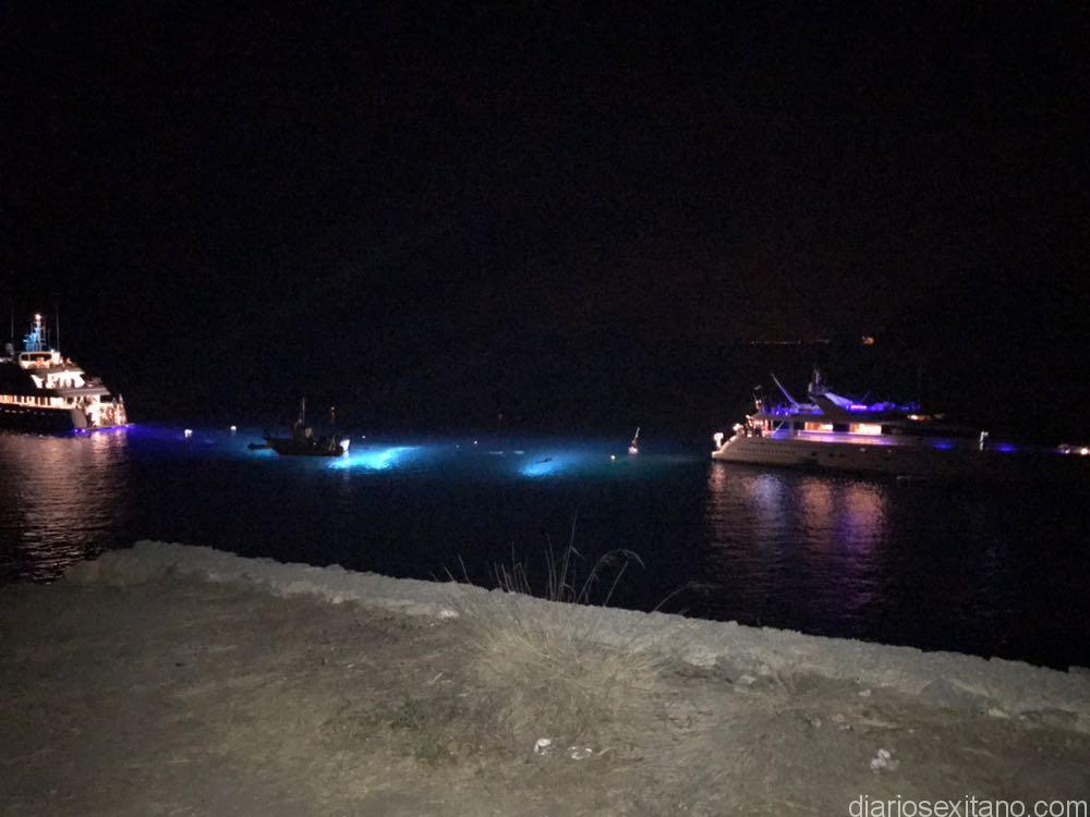 La primera jornada nocturna, que era cuando se llevó a cabo la grabación, fue en “entrenamiento” para los equipos participantes, técnicos de grabación, incluido la iluminación. Fue anoche –viernes- cuando todos entraron en acción. Ni que decir tiene que la zona se convirtió en “una romería” de ir y venir de personas que, atraídos por las luces en el mar, llegaron hasta Las Terrazas. No era para menos. El silencio de la noche hacía aún mejor la grabación del programa basado en pruebas de resistencia submarina. Para ello no se escatimó medios, incluido imágenes aéreas captadas con un dron.