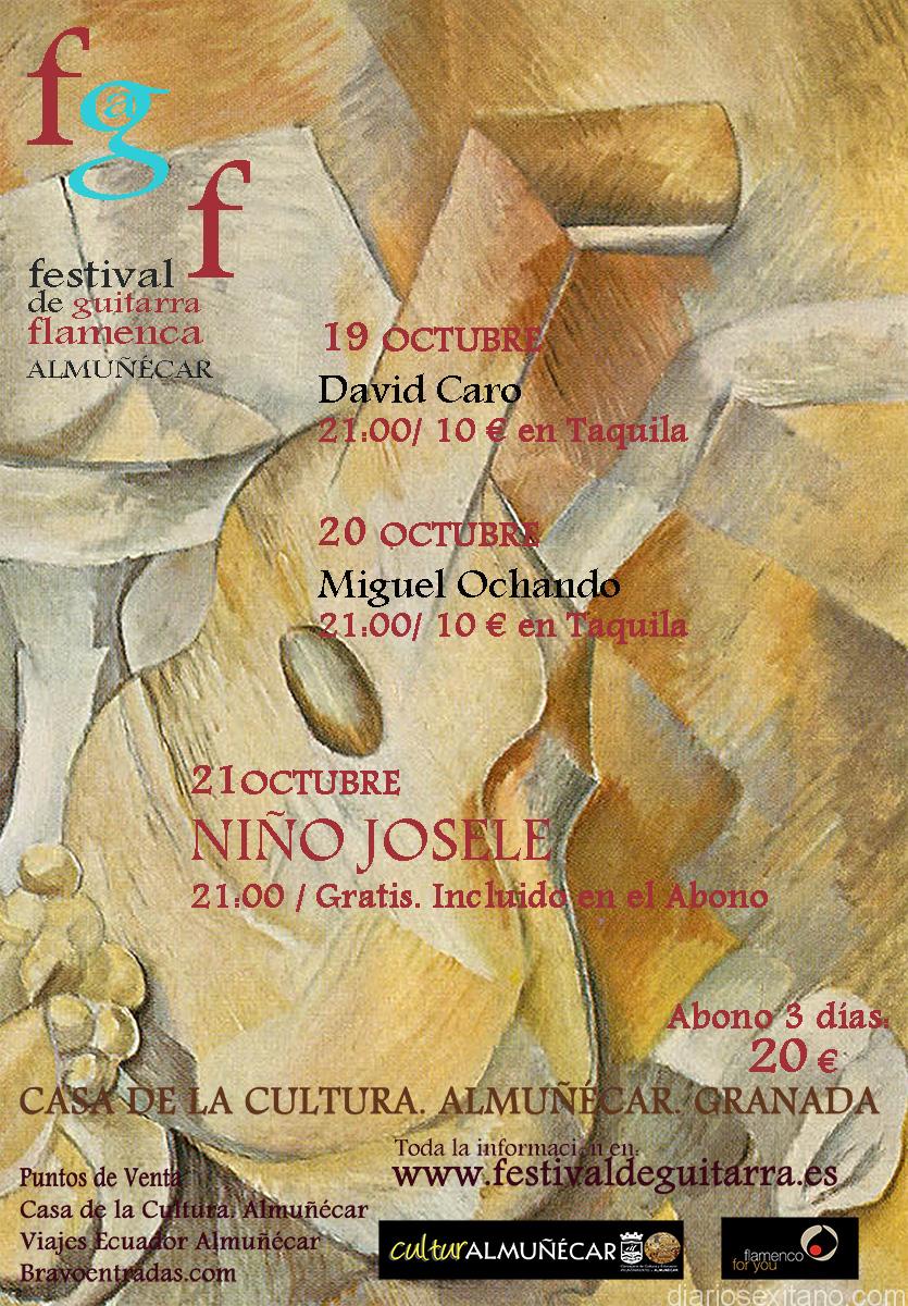 La presentación del festival se hará con el almeriense, David Caro, el jueves día 19, a las 21:00 horas, un guitarrista muy querido en Almuñécar porque ha acompañado a Juan Pinilla en distintas ocasiones. El viernes, día 20, a las 21:00 horas, será el turno del granadino, Miguel Ochando quien hará un concierto de sus composiciones salteadas con piezas de importantes guitarristas de la historia del flamenco. “Este granadino llegó a considerarse niño prodigio y su trayectoria ha estado ligada a nombres como el de Carmen Linares o Enrique Morente. Ochando vendrá acompañado de otro guitarrista y un percusionista.