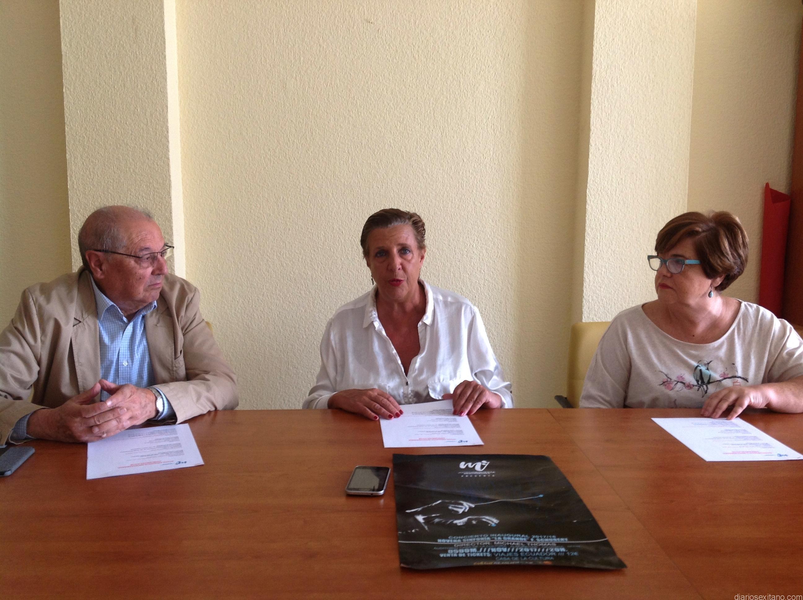 Así lo anunció la concejal de Cultura y Educación del Ayuntamiento de Almuñécar, Olga Ruano, que presentó el concierto junto con Antonio Peralta y Francisca de Rosal Muñoz, que son los presidentes y vicepresidente, respectivamente, de la asociación que apoya y coordina el calendario de actuaciones de esta orquesta, antes denominada Orquesta Joven del Sur de España (JOSE)