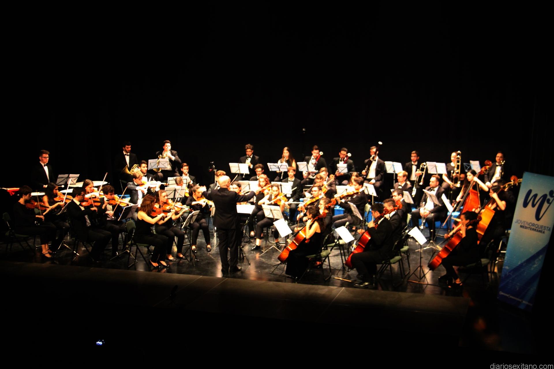 En esta primera actuación, de la decena de conciertos que tiene previsto llevar a cabo la Joven Orquesta Mediterránea en la localidad sexitana hasta el verano, contó con la participación de casi medio centenar de jóvenes músicos procedentes de Málaga, Jaén. Almería, Cádiz y Ganada, a los que se suman otros que llegan desde otras ciudades como Ciudad Real, Jerez o Manzanares.