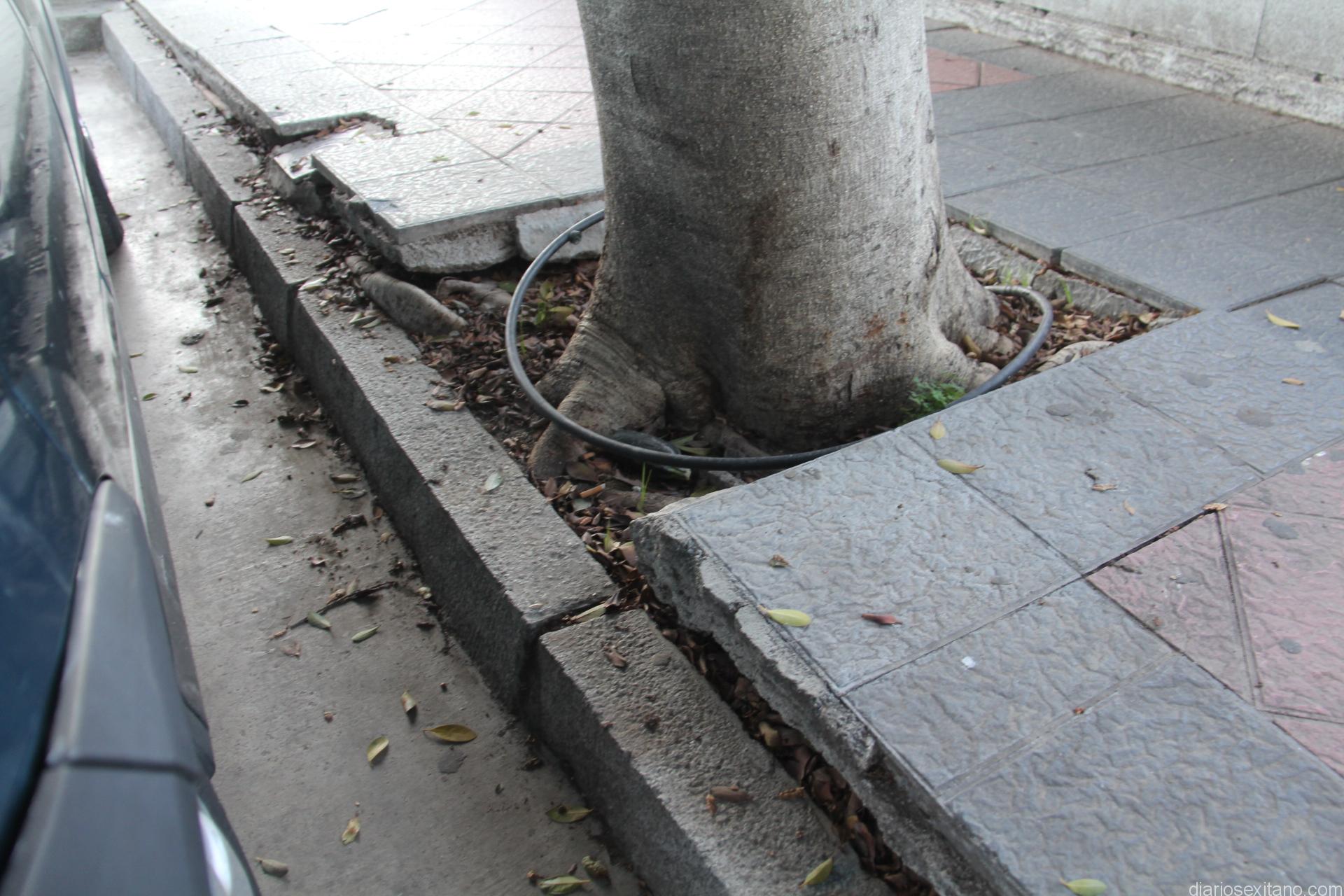Así lo ha manifestado el concejal de Medio Ambiente, Luis Aragón, quien justificó el cambio “debido a los daños que han provocado en el acerado y que a su vez también ha hecho hubieses denuncias por caída de vecinos. Esta es una acera, muy transitada debido a los establecimientos comerciales que hay en la zona, que presentaba alteraciones e incluso en los registros de los servicios de agua y electricidad. Esta variedad de arboles “ficus” siempre afloran las raíces en superficie y rompen lo que sea, como ya ocurrió en otros lugares”, explicó el edil sexitano.