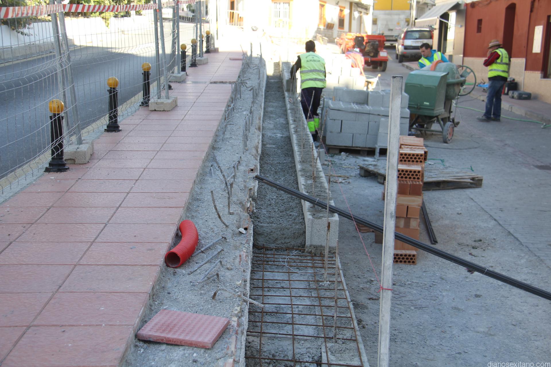 Los servicios de Obras de la Tenencia de Alcaldía de La Herradura llevan a cabo estos días los trabajos de ampliación de un tramo del acerado de la céntrica calle Acera del Pilar, paralela a parte del cauce de la Rambla del Espinar y que sirve de acceso al centro del urbano y también de salida de la localidad.
