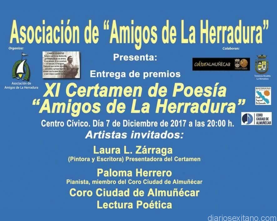 La Asociación Amigos de La Herradura entregan este jueves los premios del XI Certamen de Poesía que fue fallado recientemente por el jurado que preside el escritor y periodista Andrés Cárdenas.