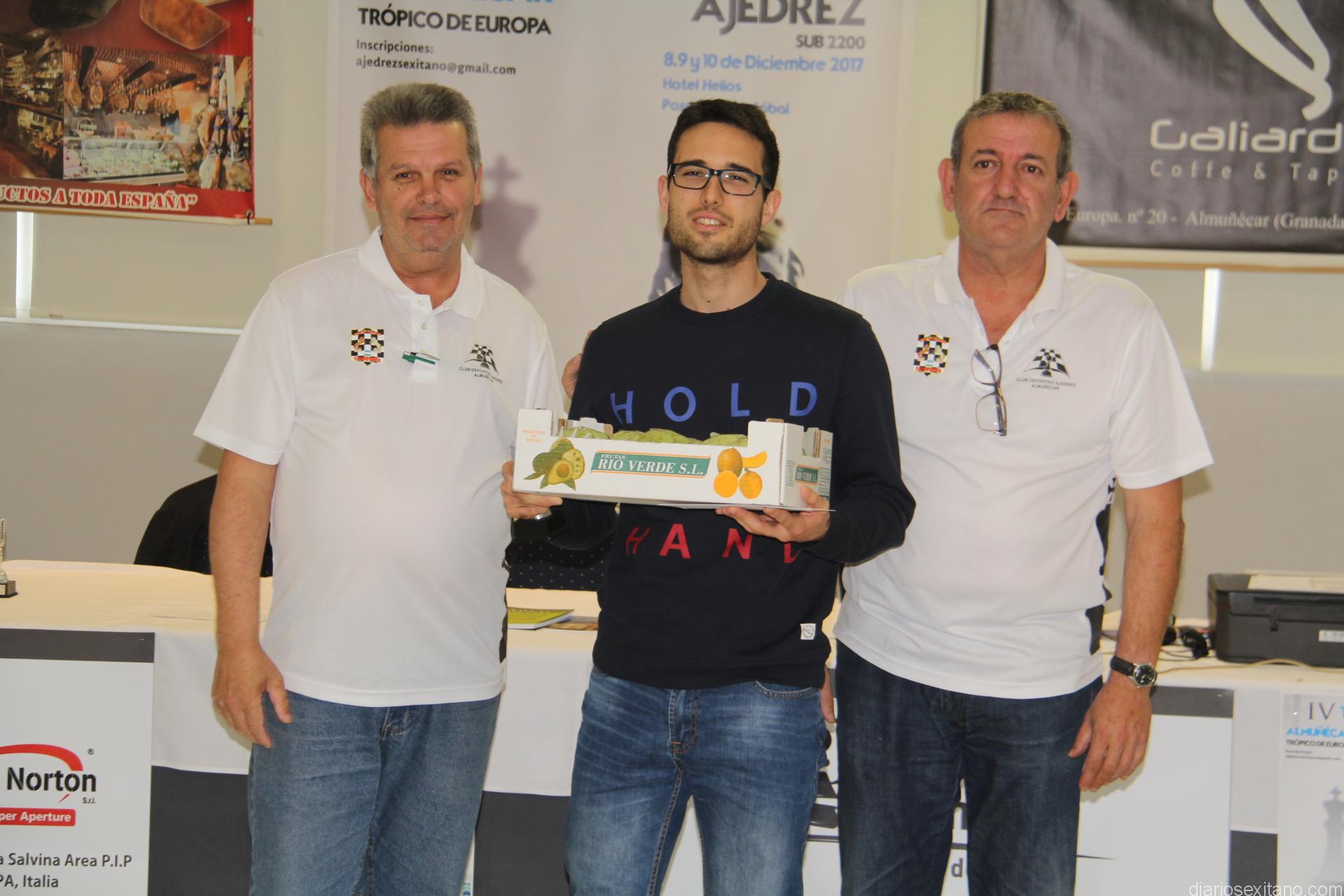 El alicantino y jugador del Club Torrefiel de Valencia, Javier Nicolás Zapata fue el ganador del IV Torneo Internacional Sub2200 Almuñécar Trópico de Europa que se celebró este pasado fin de semana en las instalaciones del hotel Helios de Almuñécar, contando con la participación de 63 ajedrecistas llegados desde distintos puntos de la geografía nacional.
