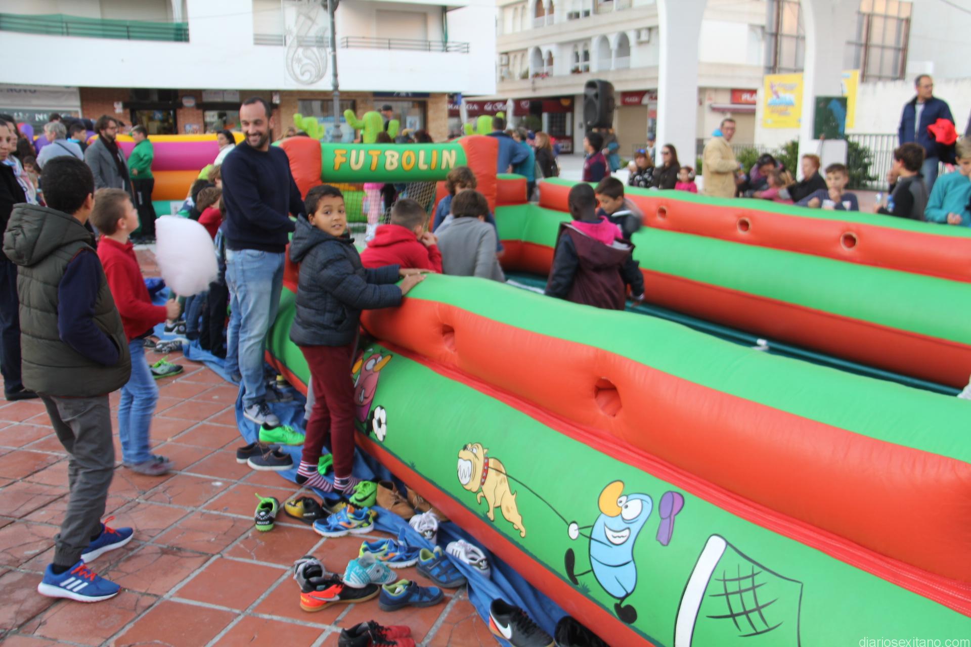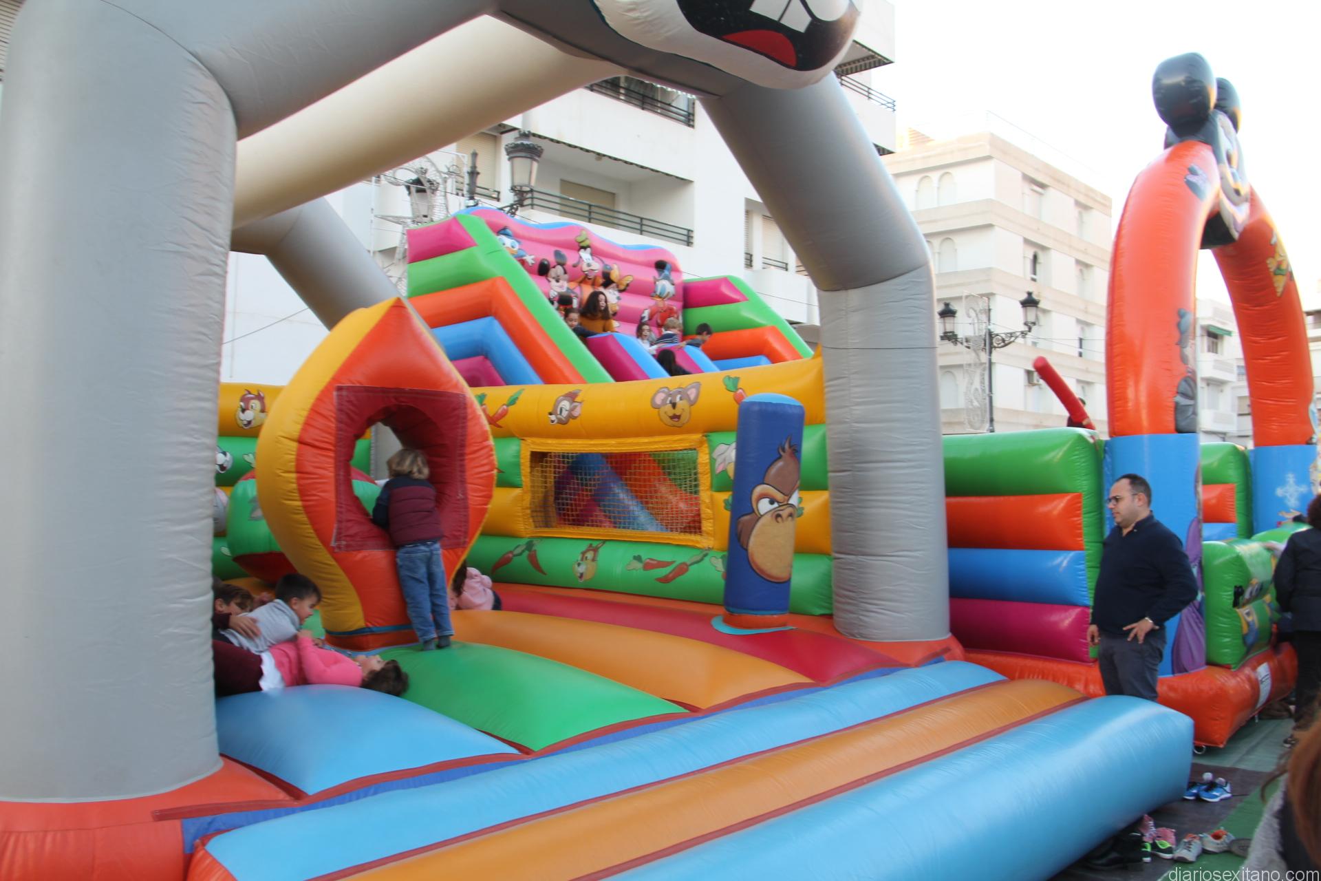 Esta actividad, incluida en la programación de Navidad que ha elaborado la Tenencia del Alcaldía con el patrocinio del Consistorio sexitano, tuvo una excelente respuesta de participación y durante más de dos horas los pequeños, acompañados de cerca por sus padres y madres, disfrutaron de atracciones hinchables como: colchones, futbolín, toboganes, toro mecánico y gladiadores que se repartieron por la citada plaza.
