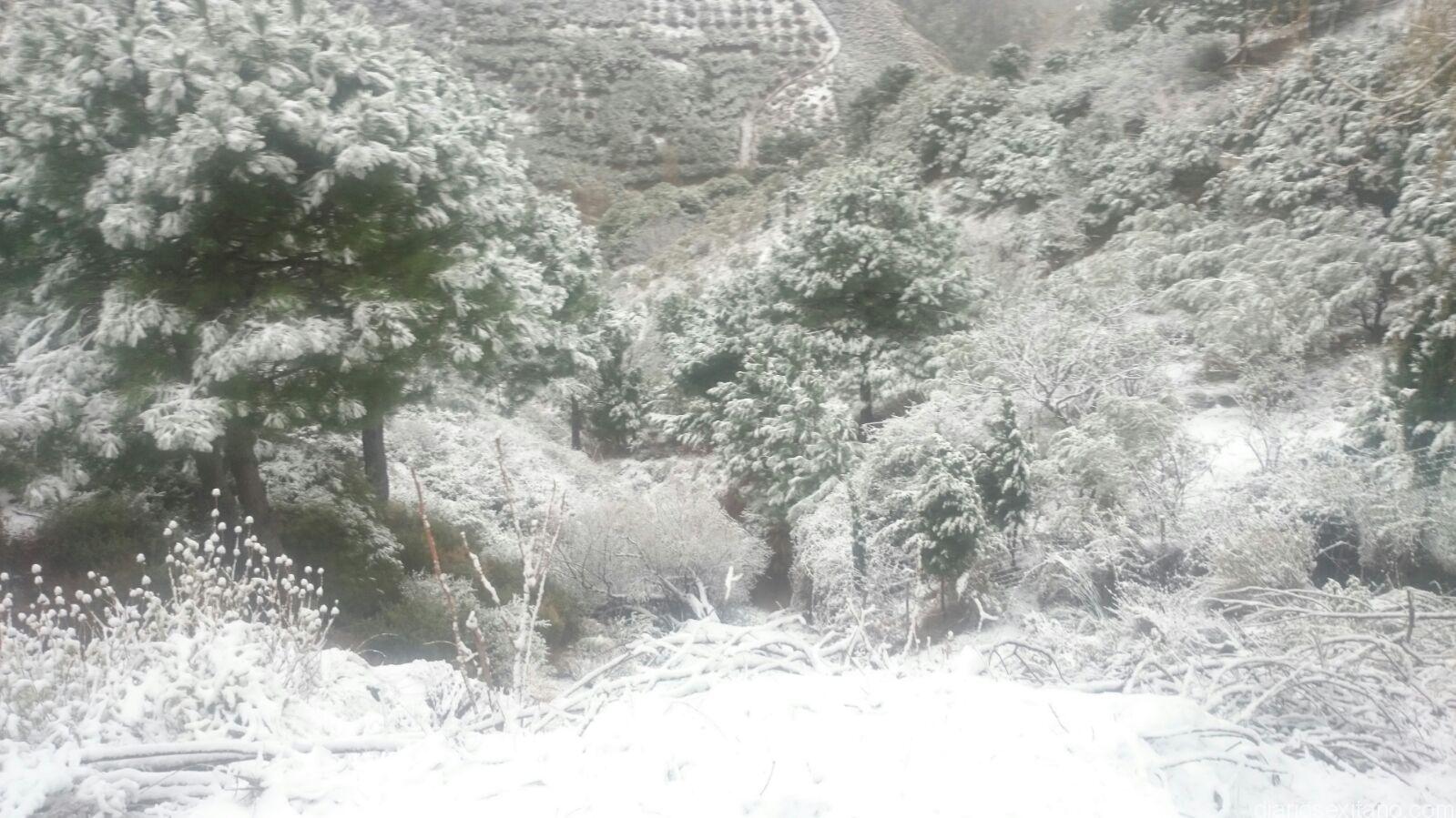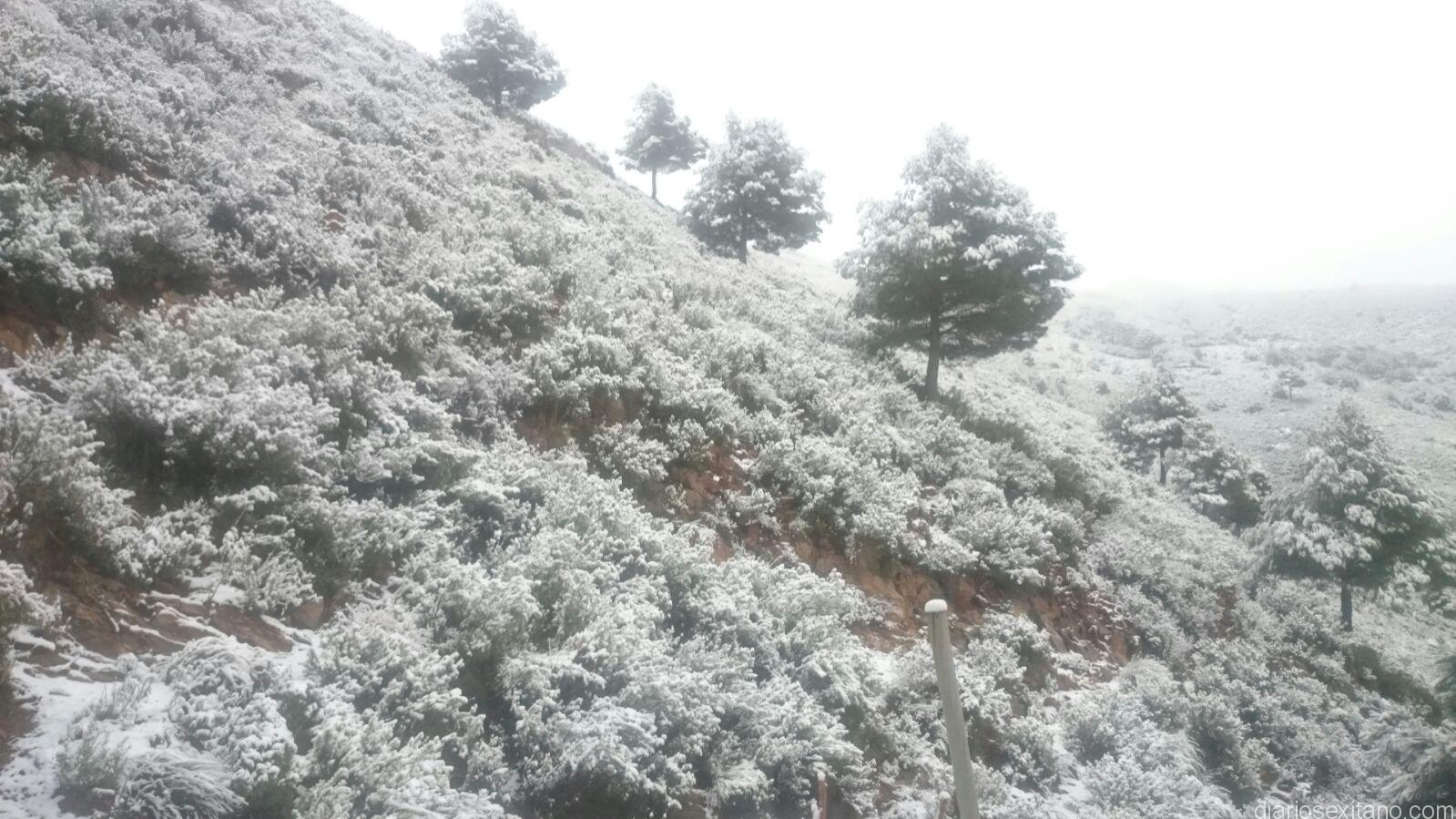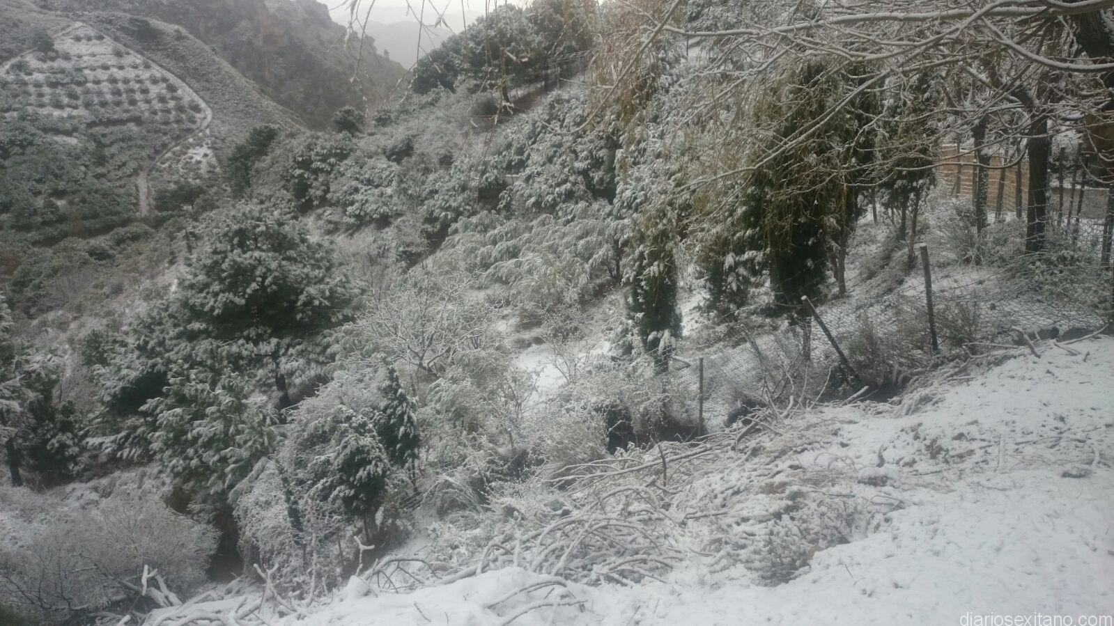 Desde los 800 metros que se sitúa la entrada hasta los 1200 metros que es la altura mayor de la finca municipal y también del término municipal sexitano, el manto blanco cubrió la misma, así como todo el entorno cercano al paraje histórico de Los Castillejos, situado entre los límites de Almuñécar y Nerja y norte del Pago el Cerval y Río de la Miel.
