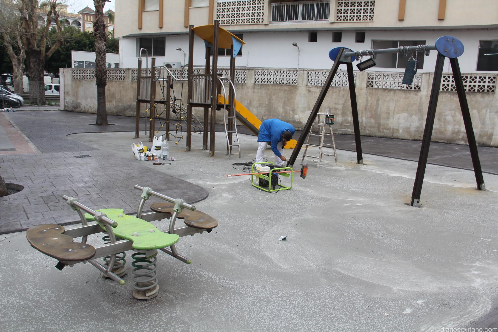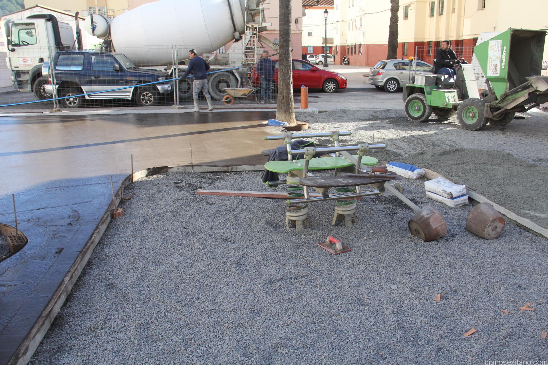 La semana próxima concluirán las obras de rehabilitación del parque infantil La Paloma con la instalación de zonas de tapiz acolchado en las zonas de juego, una vez concluidos los trabajos de hormigonado impreso a todo el recinto que hasta ahora era de chinas.