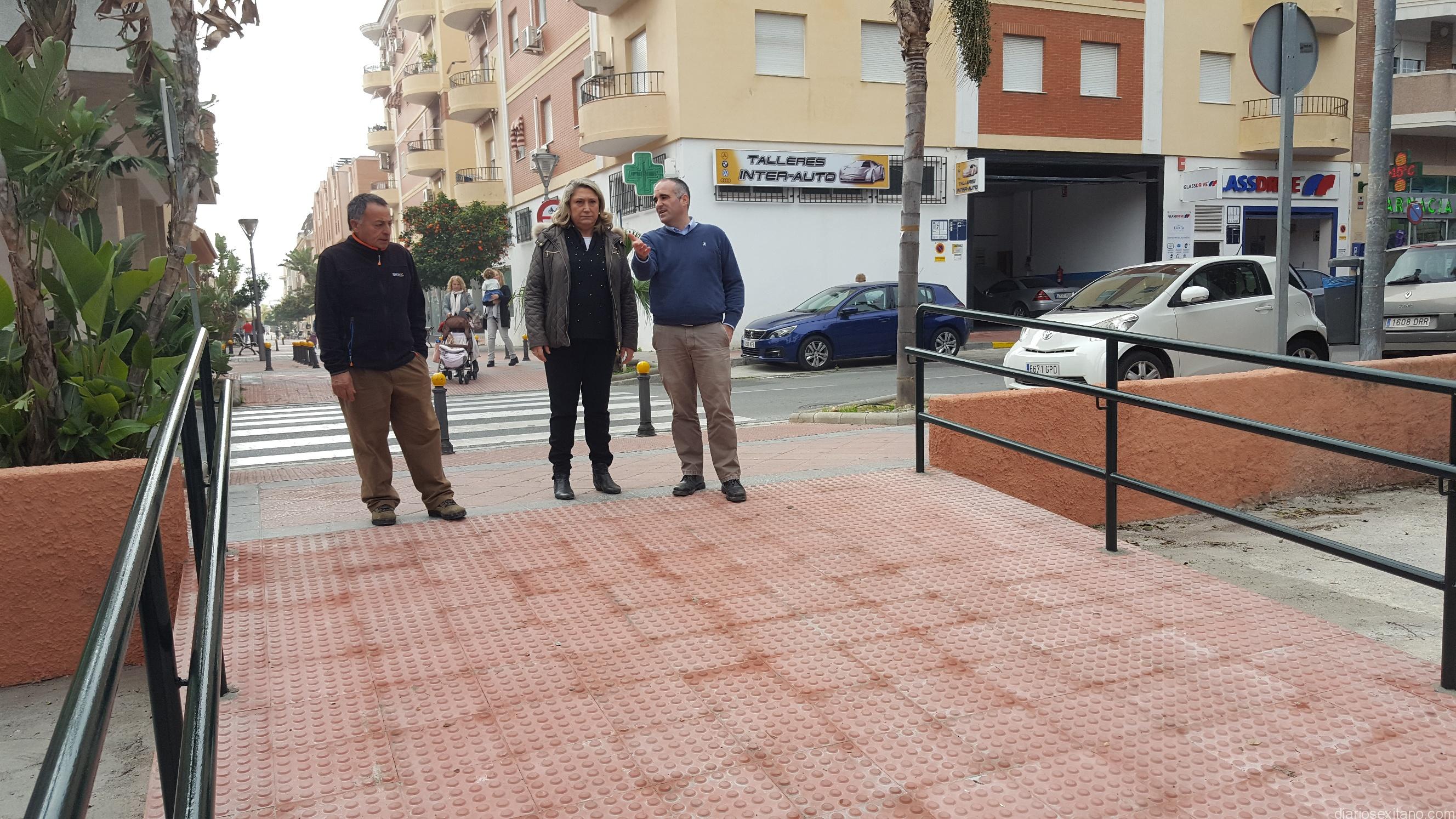 El edil de Obras, José Manuel Fernández y los técnicos municipales expusieron las mejoras en materia de accesibilidad que se han realizado en la zona del P-4, como es el caso del acerado paralelo a la CN 340 y que llegar al Barrio de Los Pinos por el puente viejo de la citada vía; la eliminación de barreras en el acerado de acceso al paseo Blas Infante, donde se ubica el recinto ferial, así como la renovación de jardinería tras el cambió de los arboles que dañaban el acerado.