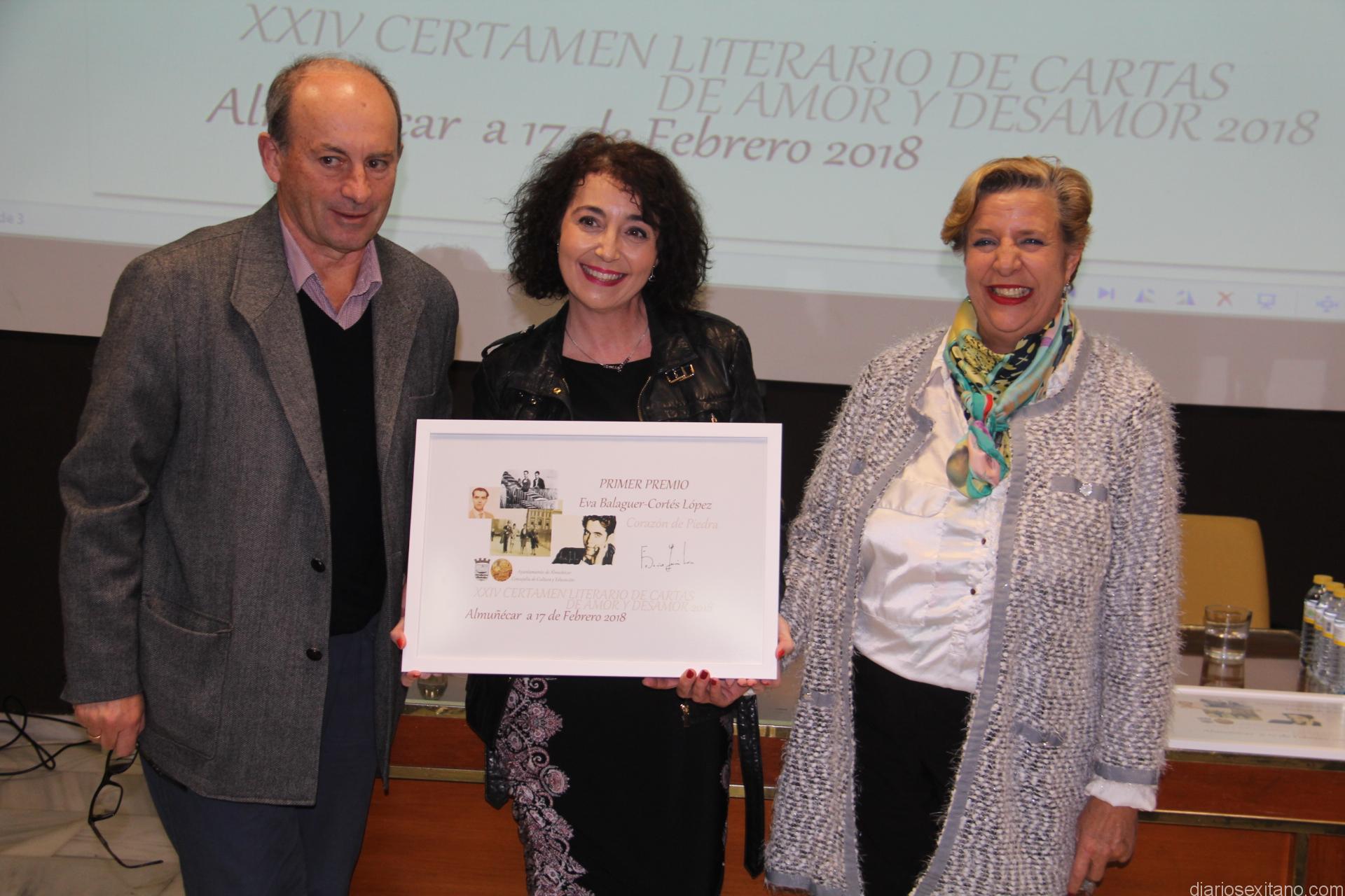 La zaragozana, Eva Balaguer Cortés López (1965) se hizo anoche con el primer premio del XXIV Certamen de Cartas de Amor y Desamor de Almuñécar 2018, dotado con 800 euros, diploma, así como alojamiento para dos personas en la Residencia Palacete del Corregidor de Almuñécar y una cena para dos personas, por la carta “Corazón de piedra” presentada bajo el pseudónimo “Centauro”.