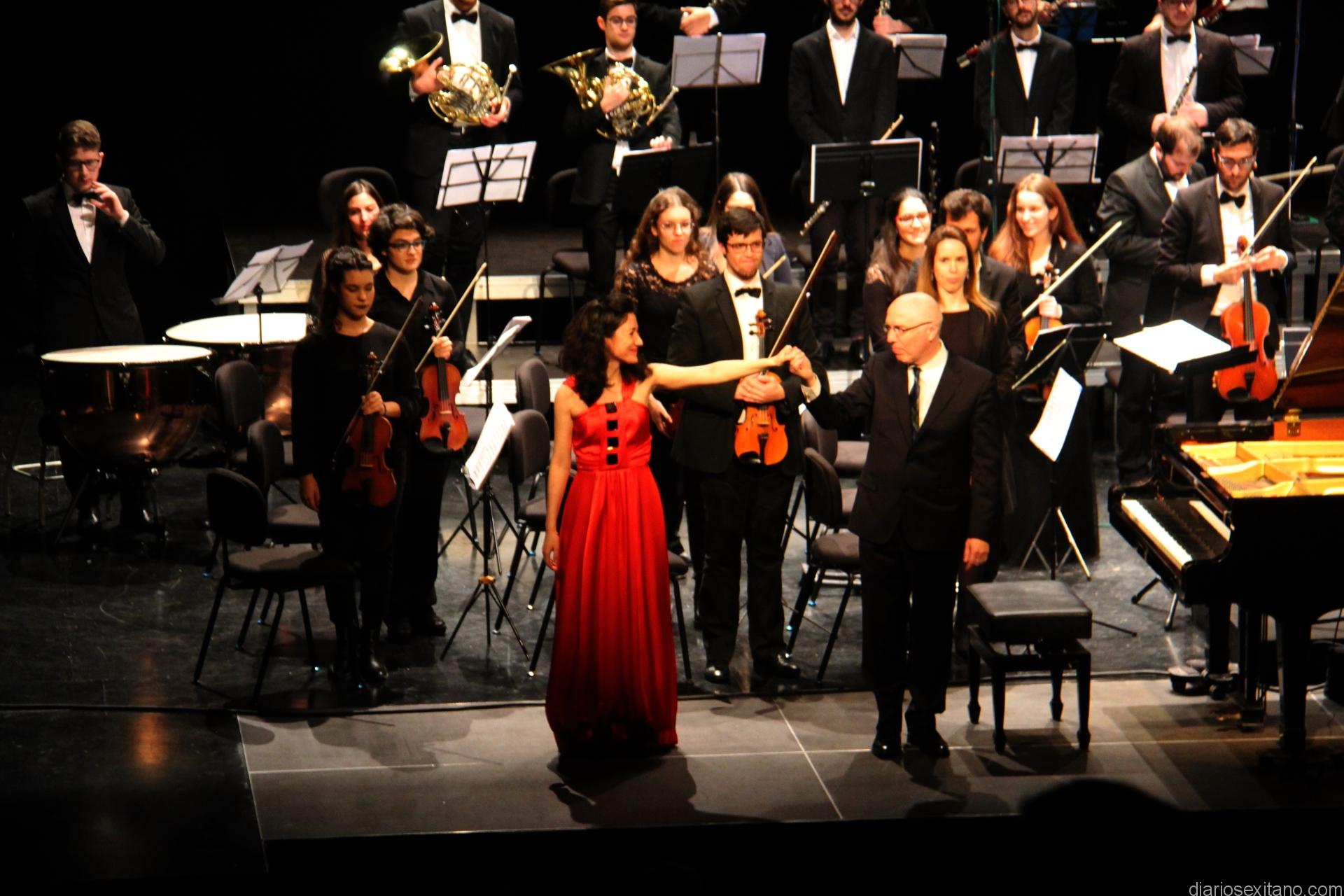 Con la interpretación del Concierto para piano y orquesta nº 5 en Mib M. Op.73 se puso el broche final a los conciertos que la Joven Orquesta Mediterránea y los pianistas Noelia Rodiles y Alejandro Algarra, bajo la dirección de Michel Thomas, ofrecieron en el auditorio de la Casa de la Cultura sexitana durante los dos últimos fines de semana y que tuvo como protagonista los cinco conciertos para piano que escribió Beethoven.